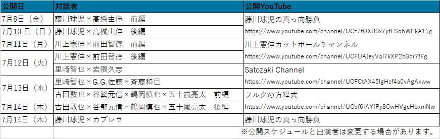 ◇7月14日(木) 古田敦也×谷繁元信×鶴岡慎也×五十嵐亮太 後編