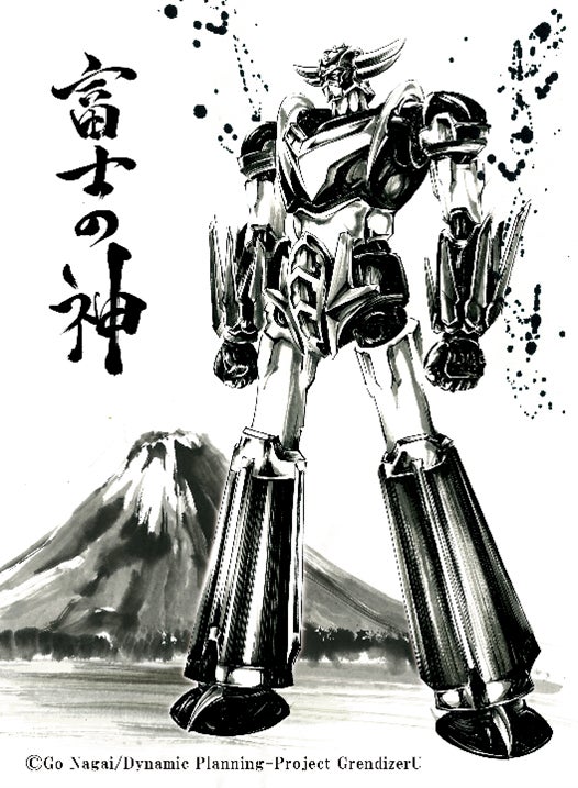 富士山麓に雄大に佇む「グレンダイザー」のイラストは、水墨画家「羽水もきゅ」が制作。