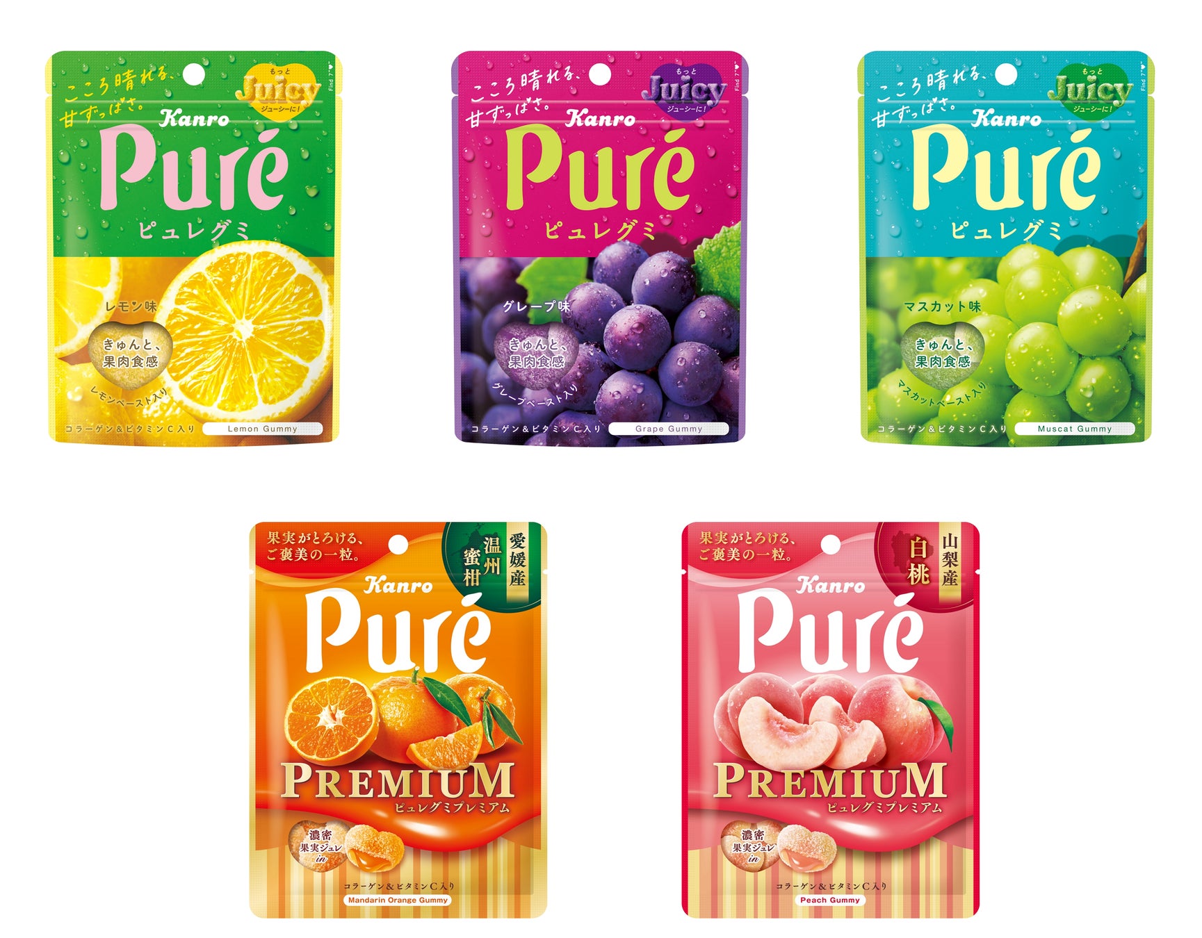 『ピュレグミ』のフルーティーなカラーをイメージしたリップグロス。グレープカラー、レモンカラー、マスカットカラーの3種類。