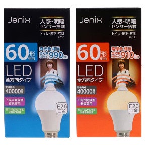 Jenix センサーLED電球 60形相当 E26 昼光色・電球色