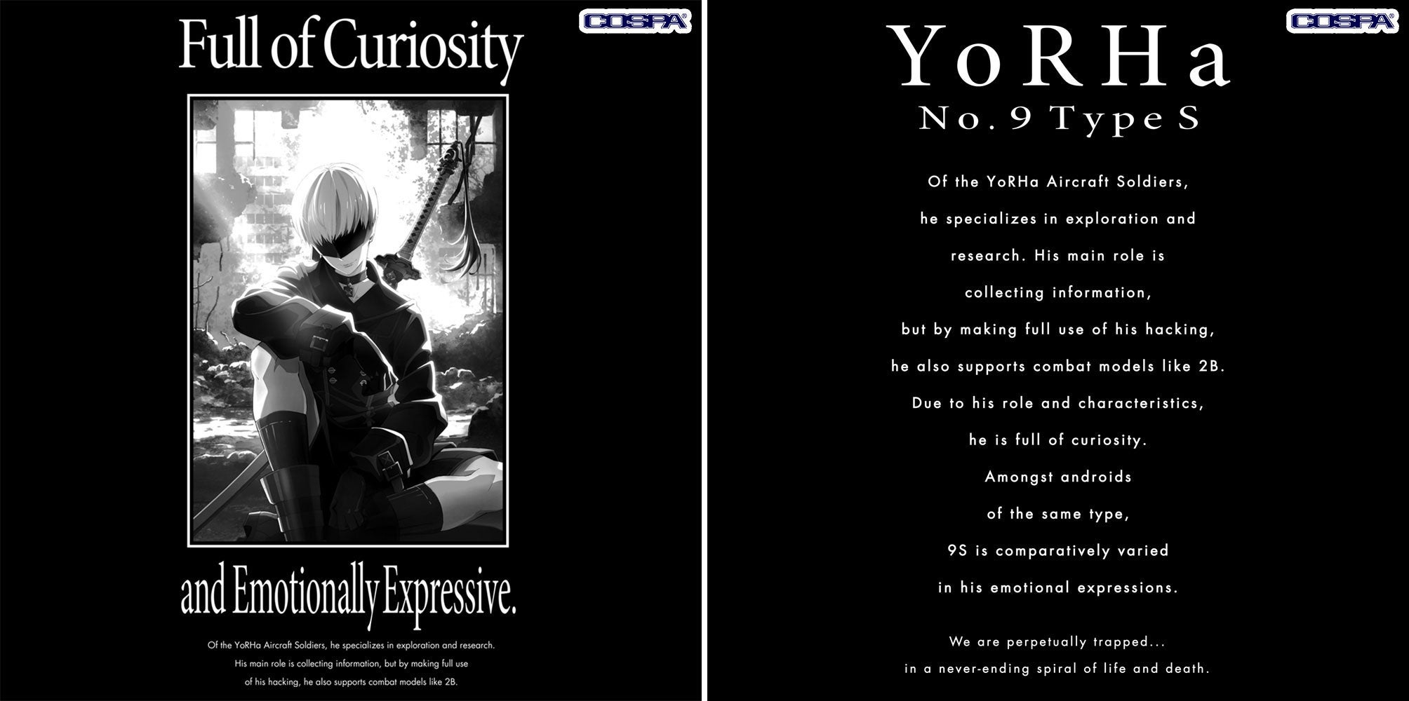 アニメ『NieR:Automata Ver1.1a』より、美麗な「2B」「9S」のイラストが映えるモノクロ表現で統一された美しいTシャツなど新グッズがCOSPA(コスパ)から登場です。