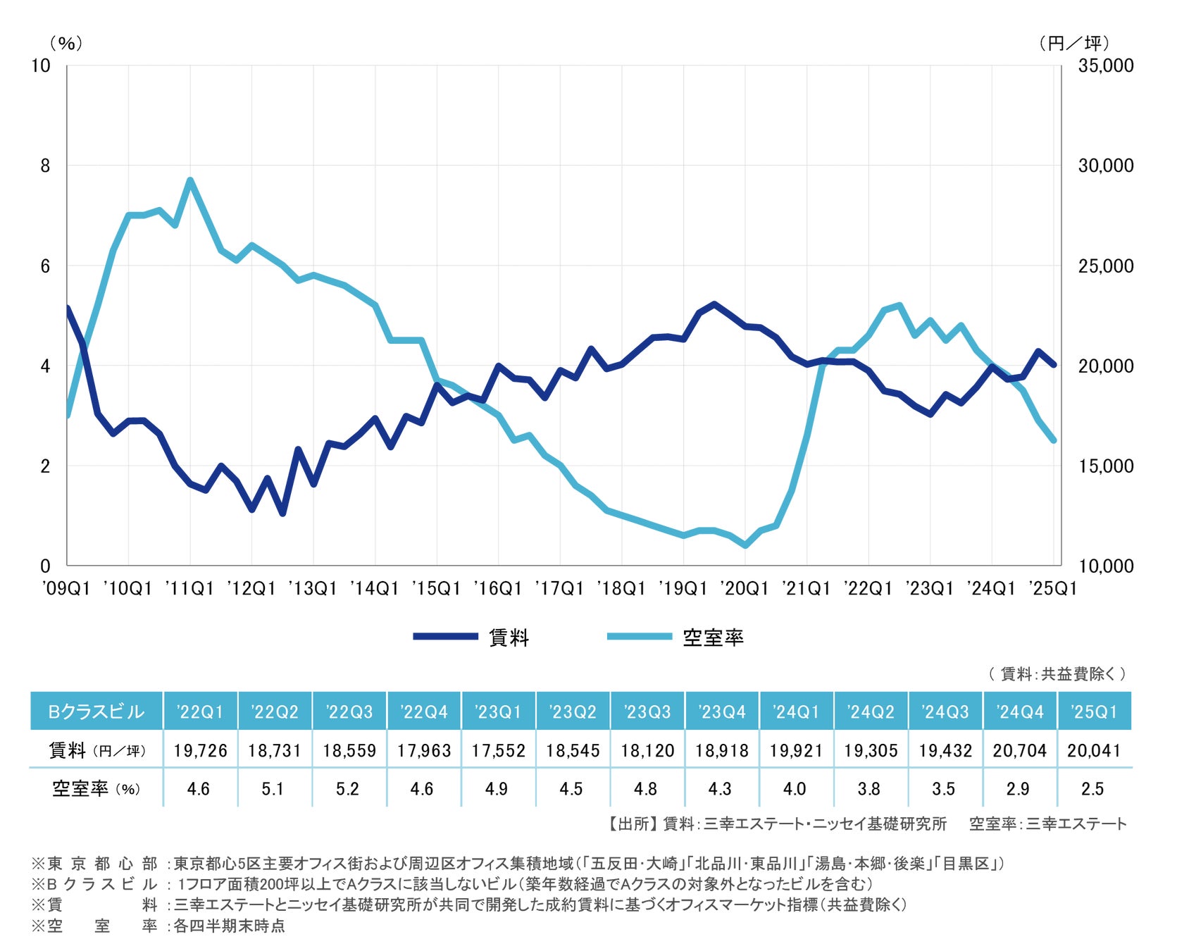 東京都心部 Bクラスビル 賃料・空室率