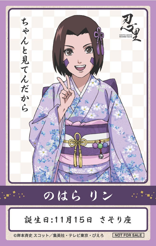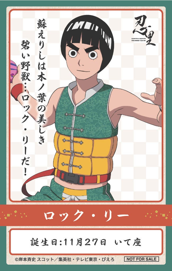 本イベントでは毎月、忍里限定の描き下ろしイラストを使用した、オリジナルバースデーステッカーをプレゼント。11月は、「サソリ」「自来也」「のはらリン」「ロック・リー」、そして今年度初登場の「サイ」をお祝いします!