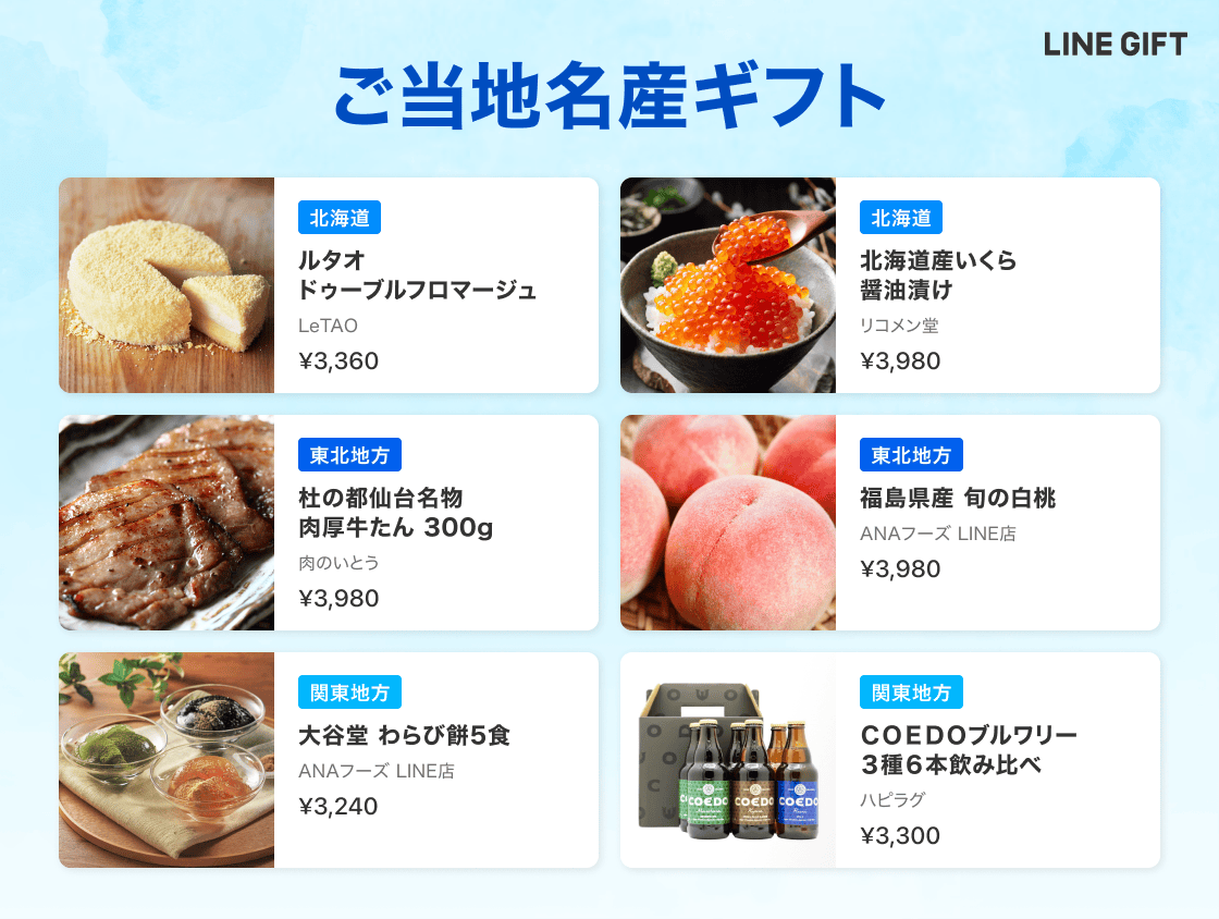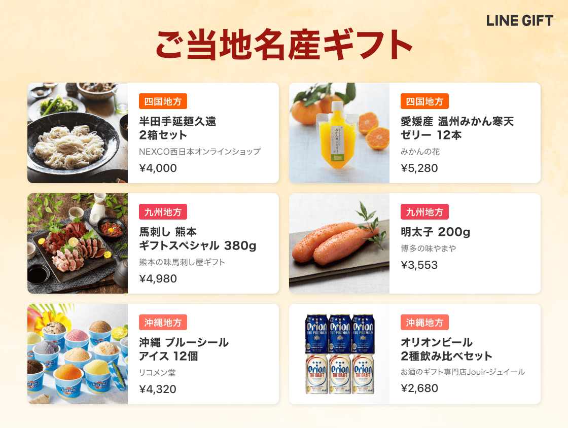 LINEギフトに47都道府県の名産品が集結、「夏のご当地名産ギフト」公開!対象ショップで使える20%OFFクーポンなどを本日より配布
