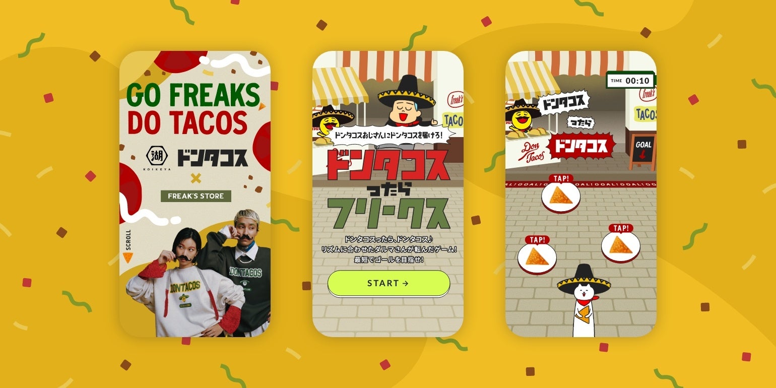 発売30周年を迎えた陽気で楽しい“ドンタコス”をデザインに落とし込んだコラボアイテムや湖池屋のスナックを詰め込んだ「GO FREAKS, DO TACOS バッグ」がもらえる3つのキャンペーンを開催