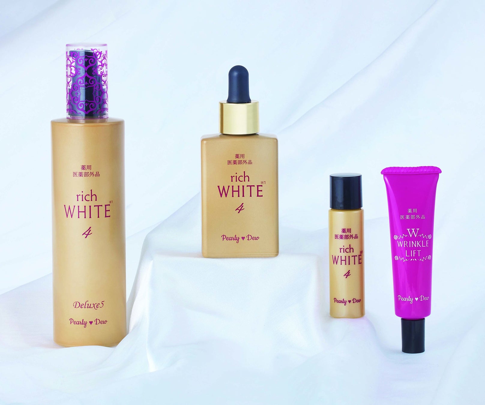 4つの有効成分を配合し、美白*などの効能効果を持つ薬用美白美容液を、新作ポーチ付きセットで