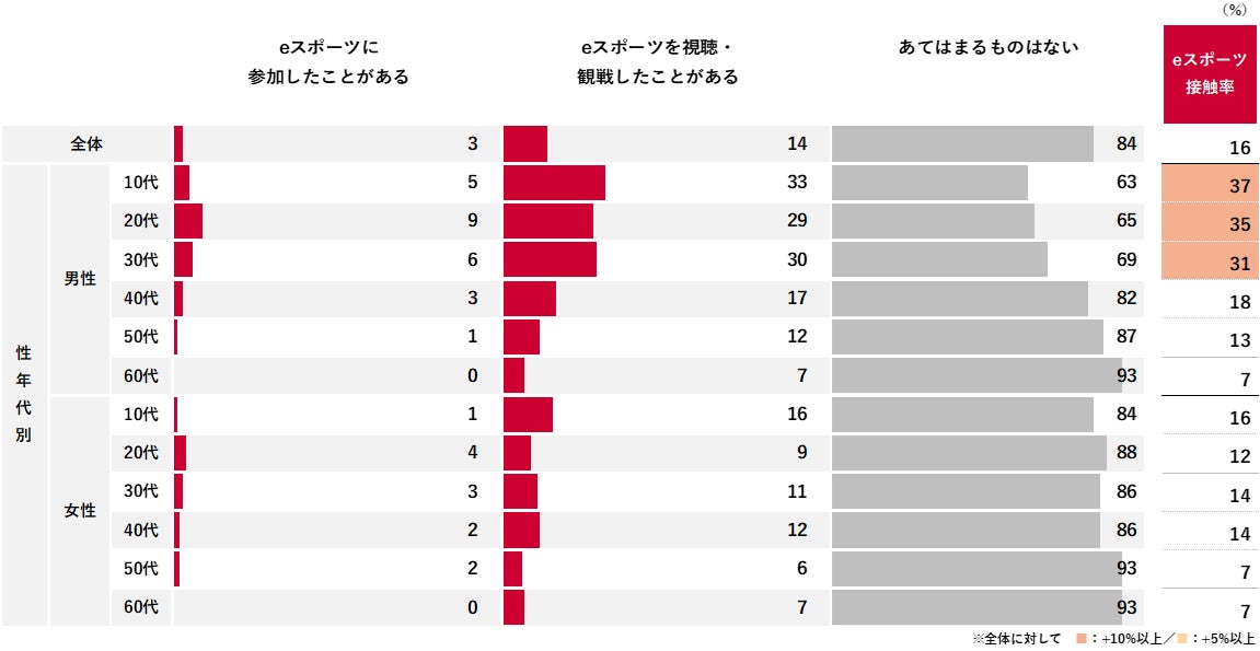 eスポーツへの参加・視聴・観戦といった接触率は16%