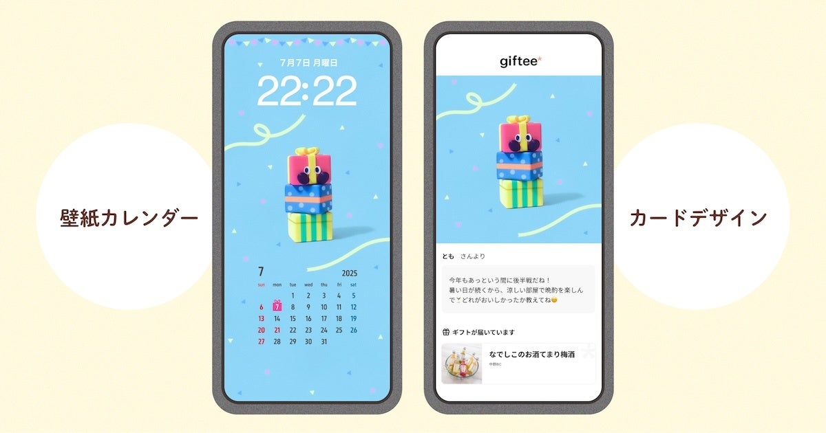 〈毎月1日、誰かにキモチを贈りたくなる「◯◯の日」を公開!〉“記念日”にちなんだ「giftee®」オリジナルのスマホ用壁紙カレンダー「おくりものカレンダー」2025年7月7日(月)は「ギフトの日」