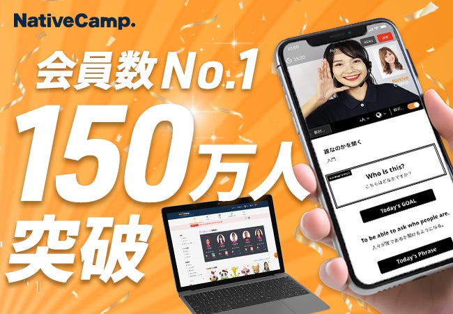 ネイティブスピーカーと回数無制限のオンライン英会話サービス「ネイティブキャンプ英会話」を展開する株式会社ネイティブキャンプ(東京都渋谷区 代表取締役:谷川国洋)は、オンライン英会話業界最大となる、会員数150万人を突破いたしました。