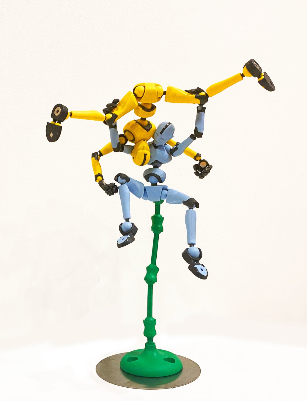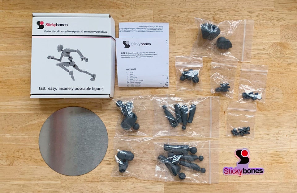【Stickybones(https://kibi.co/stickybones3)】(スティッキーボーンズ)は、人型の絵や立体物を作るときのベースになる「素体」と呼ばれるフィギュアの一種です。独自の関節システム(米国特許取得済)と両手足の磁石により、リアルな人体以上の自由自在なポージングが再現できます。