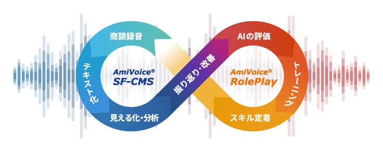 接客・商談の会話を見える化・分析する「AmiVoice SF-CMS」と、AIを活用して効率的な営業トレーニングを可能にする「AmiVoice RolePlay」の、2つの営業力強化ソリューションを「AmiVoice SalesBoost」としてシリーズ化。これにより、接客・商談の見える化と、公正な評価に基づくセルフトレーニングによる改善サイクルの実行が可能になり、継続的かつ効率的な営業力強化を図ることができます。