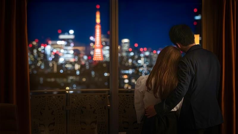 夢のような一夜はホテルからの優雅な送迎でスタート。水族館「マクセル アクアパーク品川」へ到着すると、約350種20,000点の海の生きものたちがおふたりを歓迎します。また音・光・映像のアートに彩られる幻想的な「ナイトドルフィンパフォーマンス」も“ふたりじめ”。プロカメラマンによる記念撮影など、非日常空間で、感動と興奮に包まれる体験が叶います。ご用意する客室からは東京タワーを望むことができ、ご滞在を通して光に包まれる、ロマンチックなクリスマスをお過ごしいただけます。