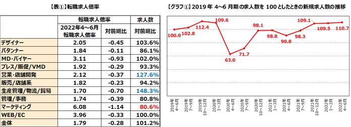 アパレル・ファッション業界の「転職求人倍率」(2022年4~6月期)を発表採用活動が活発化し、求人数は過去最高レベル