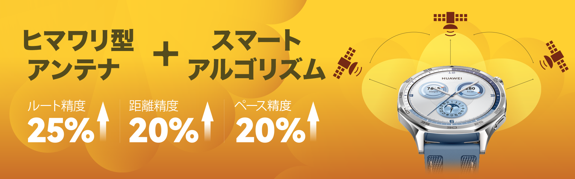 ウォッチに搭載されたヒマワリ型アンテナとインテリジェントなアルゴリズムにより、スポーツ中でも、手首のウォッチがどのような位置や向きにあっても、太陽を向くヒマワリのように、常に衛星の方向を自動で認識し、信号を最適な状態に調整します。それにより、前モデルと比較して、『HUAWEI WATCH GT 5』はGPSの精度を約20%以上、向上させています。ゴルフやランニングなど、各種スポーツモニタリングにおいて、より正確に自分の位置やルートを把握し、運動能力を測定するのに役立ちます。