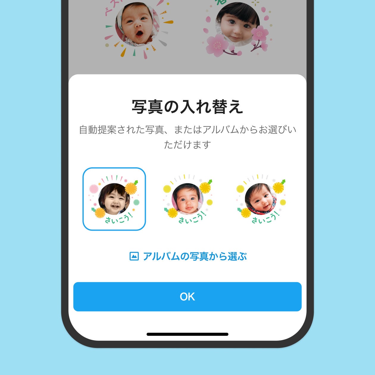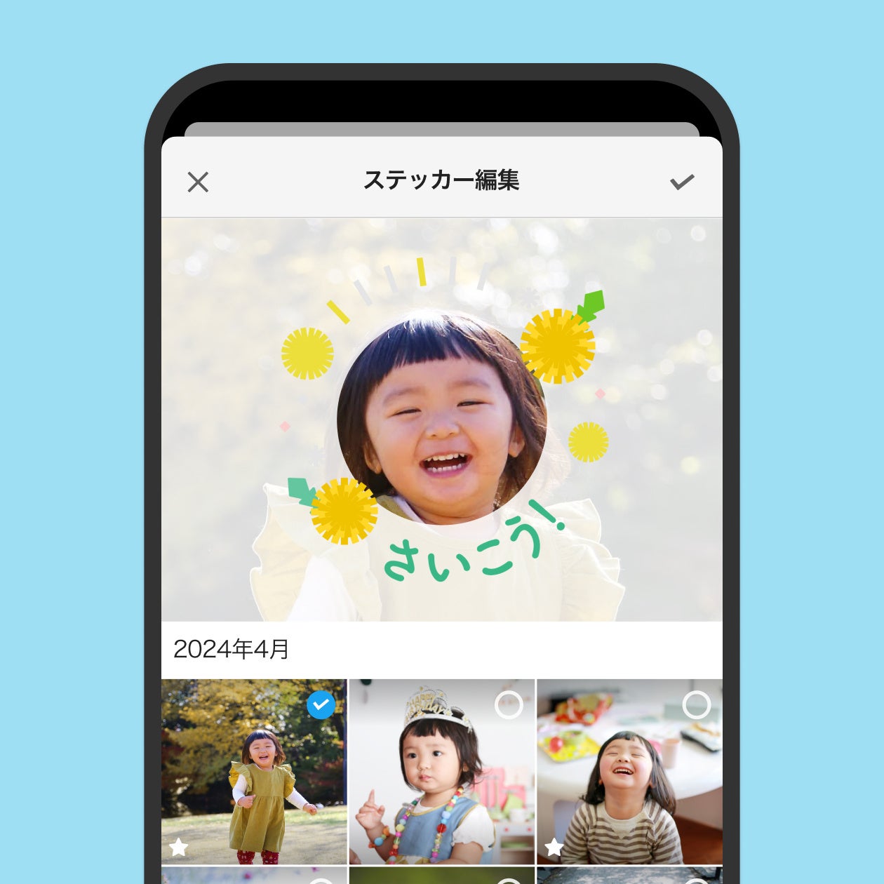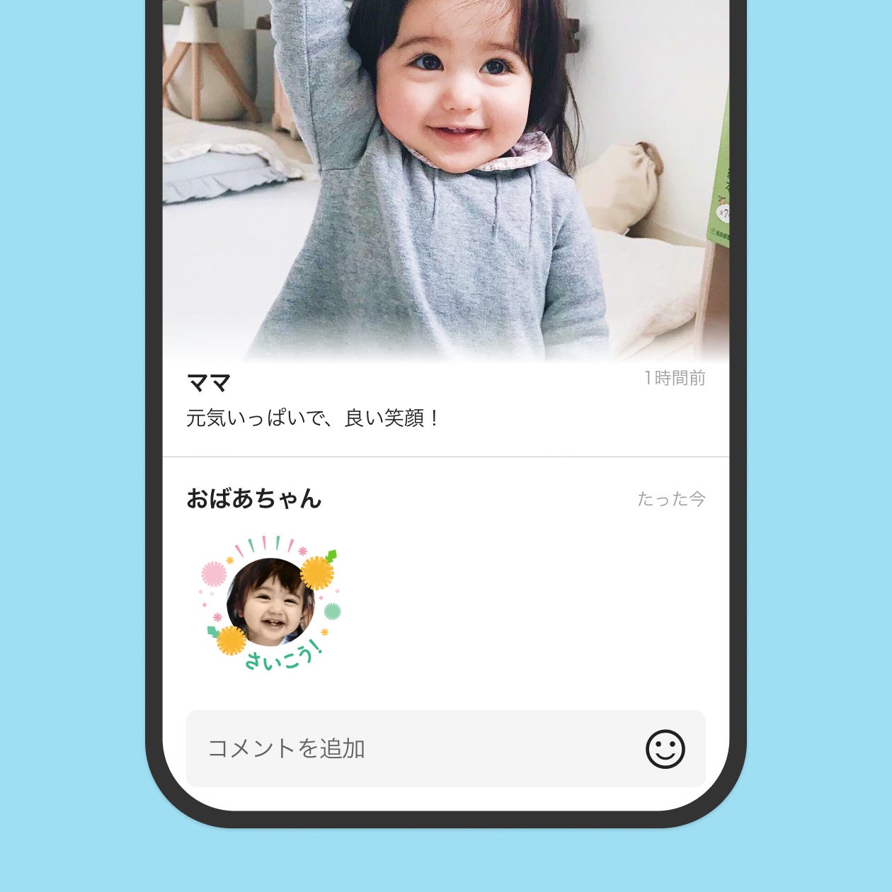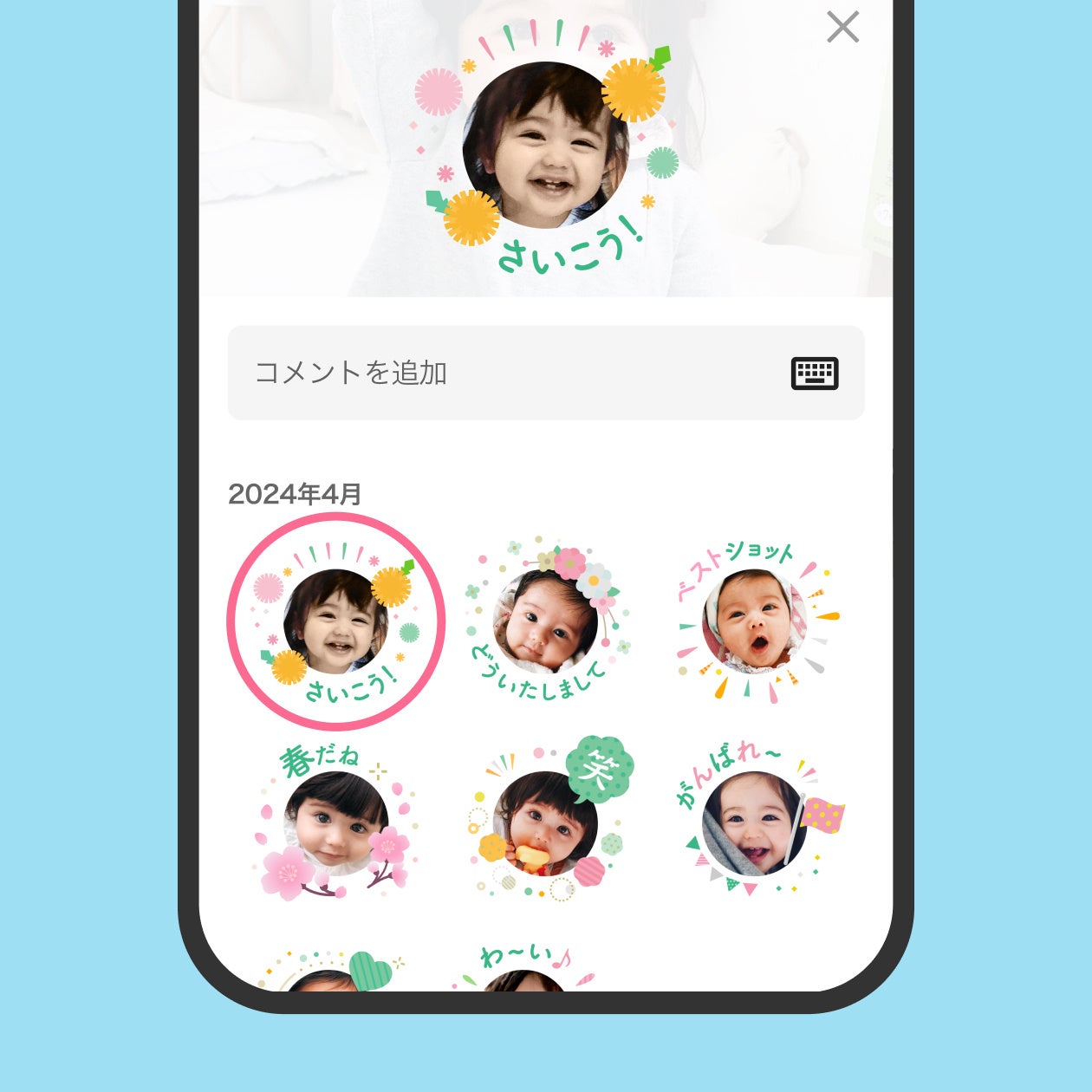 ステッカーは、家族によく見られた「みてね」アルバム内の写真から自動作成され、