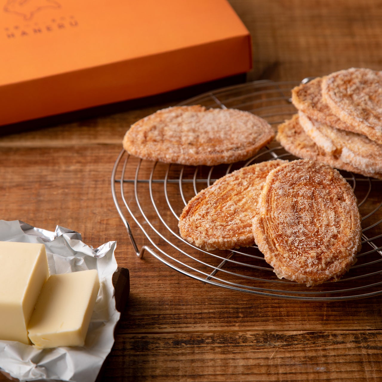 バターパイは通常のパイよりも固く焼き上げているので噛めば噛むほどにバターの美味しさが味わえます。