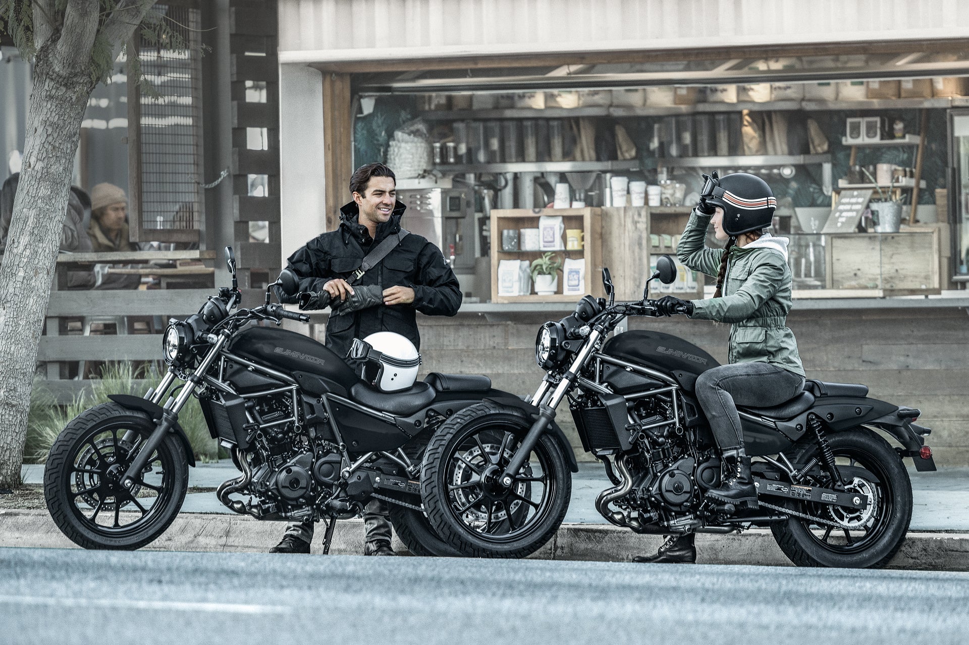 ELIMINATORのロー&ロングフォルムに、スタイリッシュなデザインのヘッドライトカウル、ミツバサンコーワ製のGPS対応型前後ドライブレコーダー、USB Type-C電源ソケットを装備し、ライダーの安心感や快適性を高めているほか、ツートーンのシートレザーやフロントフォークブーツがよりワイルドな雰囲気を漂わせています。
