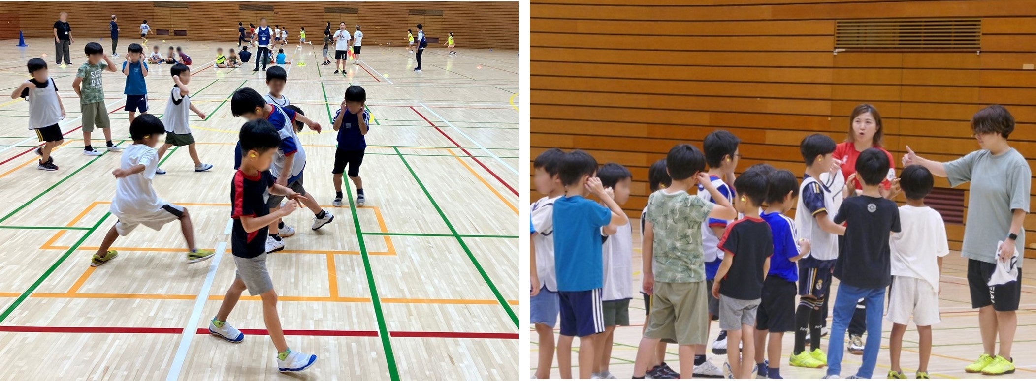 今回はデフフットサルを通じて、音のない中でどのように工夫してコミュニケーションをとるかの説明をメインに、読唇術(どくしんじゅつ)やジェスチャーを使った伝言ゲームなどを行いました。その他、耳栓をつけ音が聞こえない状態を再現して実際に試合を行うことで聴覚障がいへの理解促進を図り、子どもたちは時間が進むにつれて自然にジェスチャーでコミュニケーションを取れるようになっていきました。