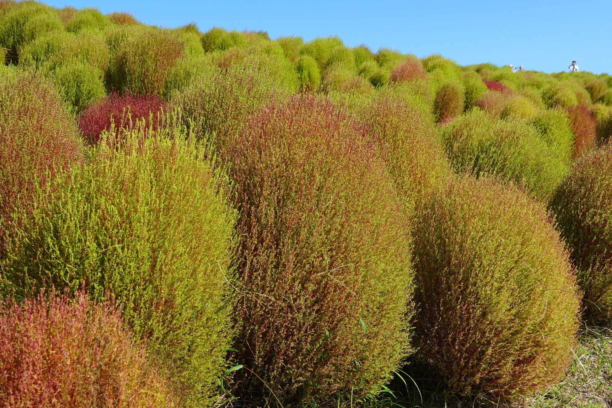 色づく丘が、秋を先取り。コキアが告げる、秋の訪れ。