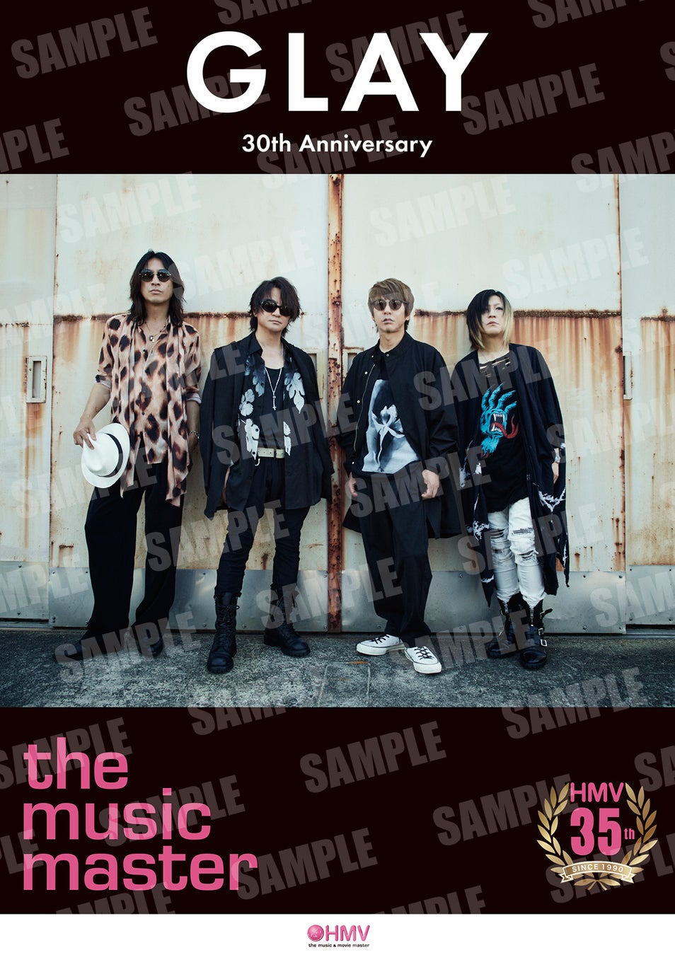 本企画では、限定グッズの販売をはじめ、GLAYメンバーへの特別インタビューを掲載したフリーペーパー「the music & movie master GLAY特別号」の配布、HMV店舗での衣装展・パネル展・店頭抽選会などの開催を予定しています。