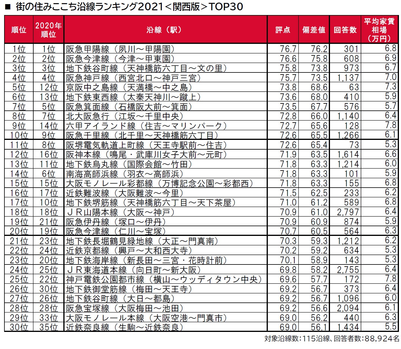 - 街の住みここち沿線ランキング2021<関西版>上位の分析 <総合1~3位>