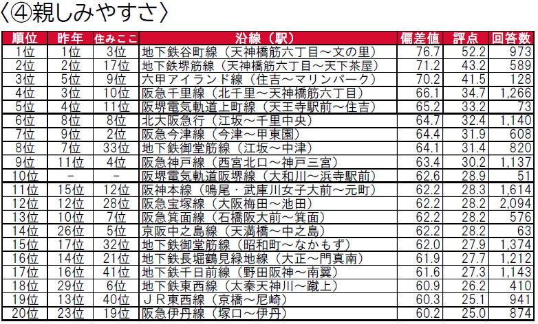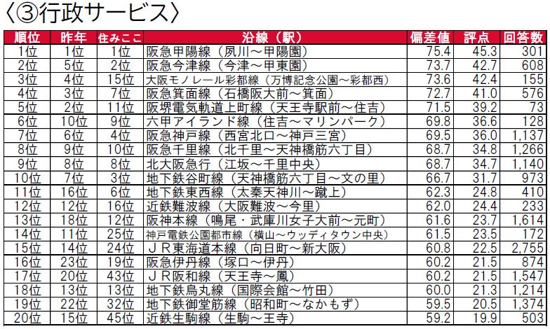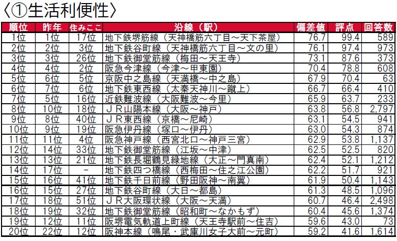 - 街の住みここち沿線ランキング2021<関西版> 因子別評価TOP20①