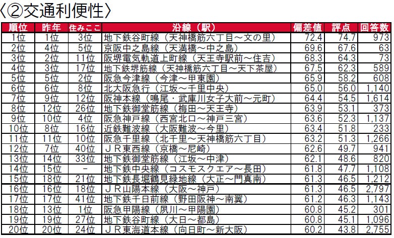 •2020年順位は、関西エリアの居住者を対象に2019・2020年の2カ年分の回答を累積し、回答者数50名以上の沿線をランキング対象として集計しています。