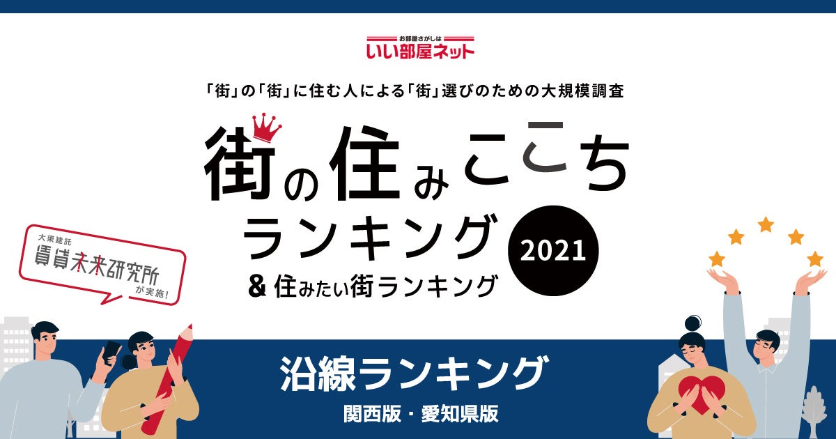 •新聞・雑誌、テレビ・ラジオ等の報道関係者におかれましては、本リリースを掲載・報道または引用する場合には、「いい部屋ネット 街の住みここち沿線ランキング2021<関西版>」と出所の表記をお願いします。