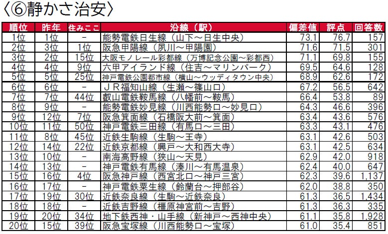 - 街の住みここち沿線ランキング2021<関西版> 因子別評価TOP20②