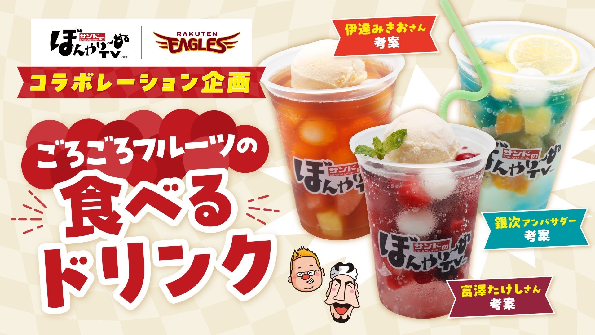 株式会社楽天野球団(本社:宮城県仙台市宮城野区、代表取締役社長:森井 誠之)は、7月26日(金)より『サンドのぼんやり~ぬTV』コラボレーションドリンクを販売することとなりましたので、お知らせいたします。
