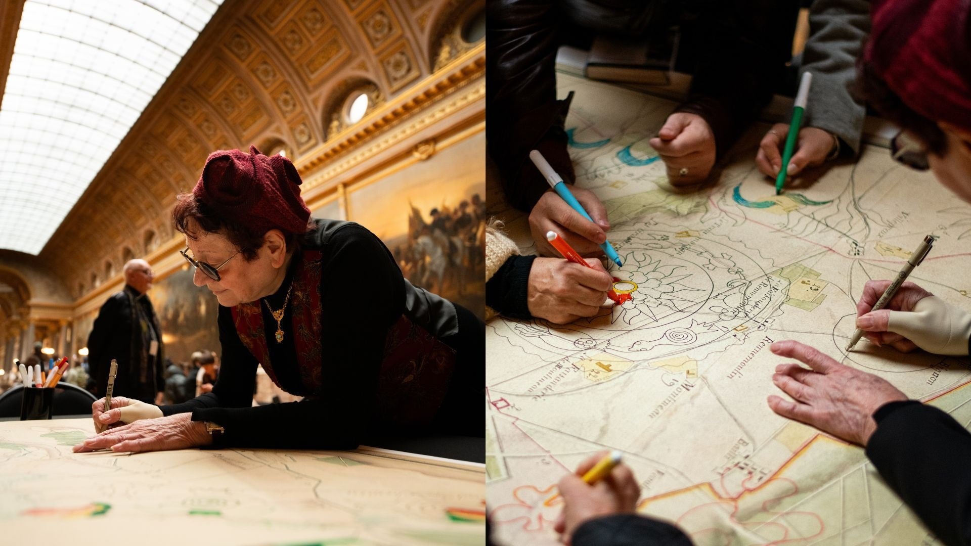 共同制作のプロセスでは、宮殿のアーカイブに収蔵されている地図をもとに、庭園の彫刻から着想を得た太陽や動物のモチーフが徐々に形を成していきました。来場者が彼女の創造の世界に自然と引き込まれ、そのイマジネーションに導かれていく様子は、とても美しい光景でした。