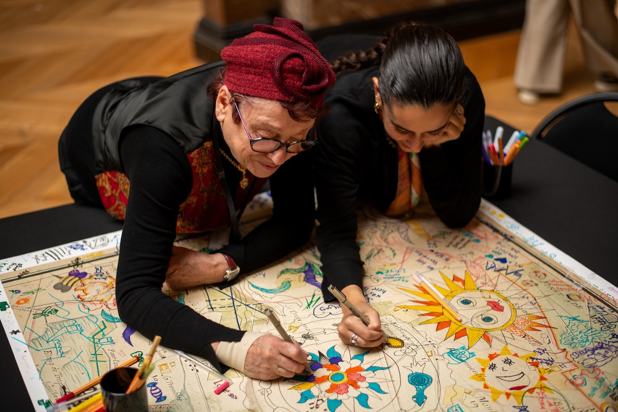 その後行われた一般来場者との共同制作は、開始直後から多くの参加者に恵まれ、全員が同時に参加できないほどの盛況となりました。子どもから大人まで幅広く、国籍や背景を越えて多様な人々が集い、作家を中心に輪が生まれる光景は、企画の理念を体現する象徴的な瞬間として印象づけられました。