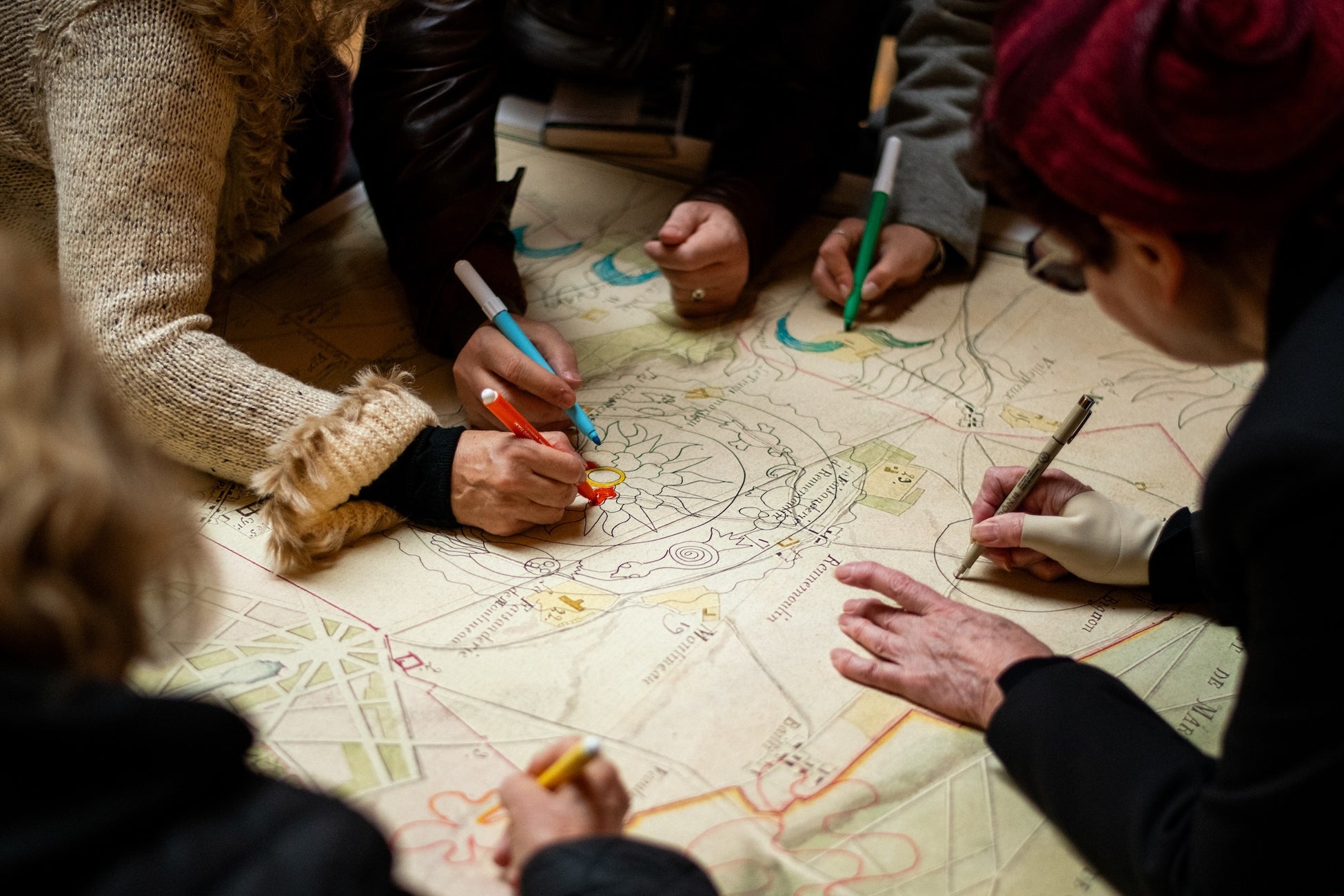 本企画を通じて出会ったアーティスト、エヴリン・ポスティックとその作品世界は、とても印象的でした。古い地図をインスピレーションの源とし、詩的な世界観を紡ぎ出す彼女独自の表現に、私たちの心は瞬く間に惹きつけました。