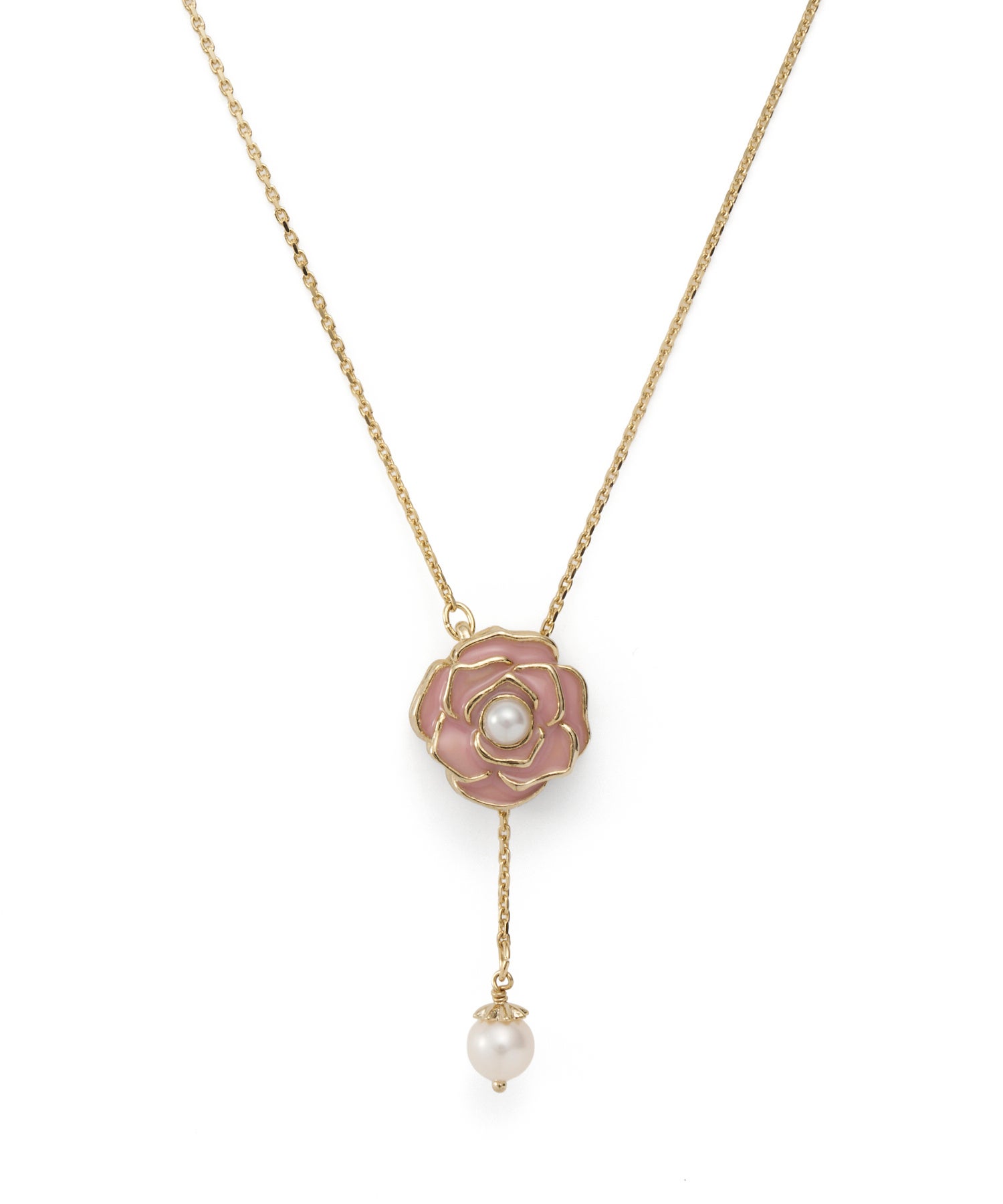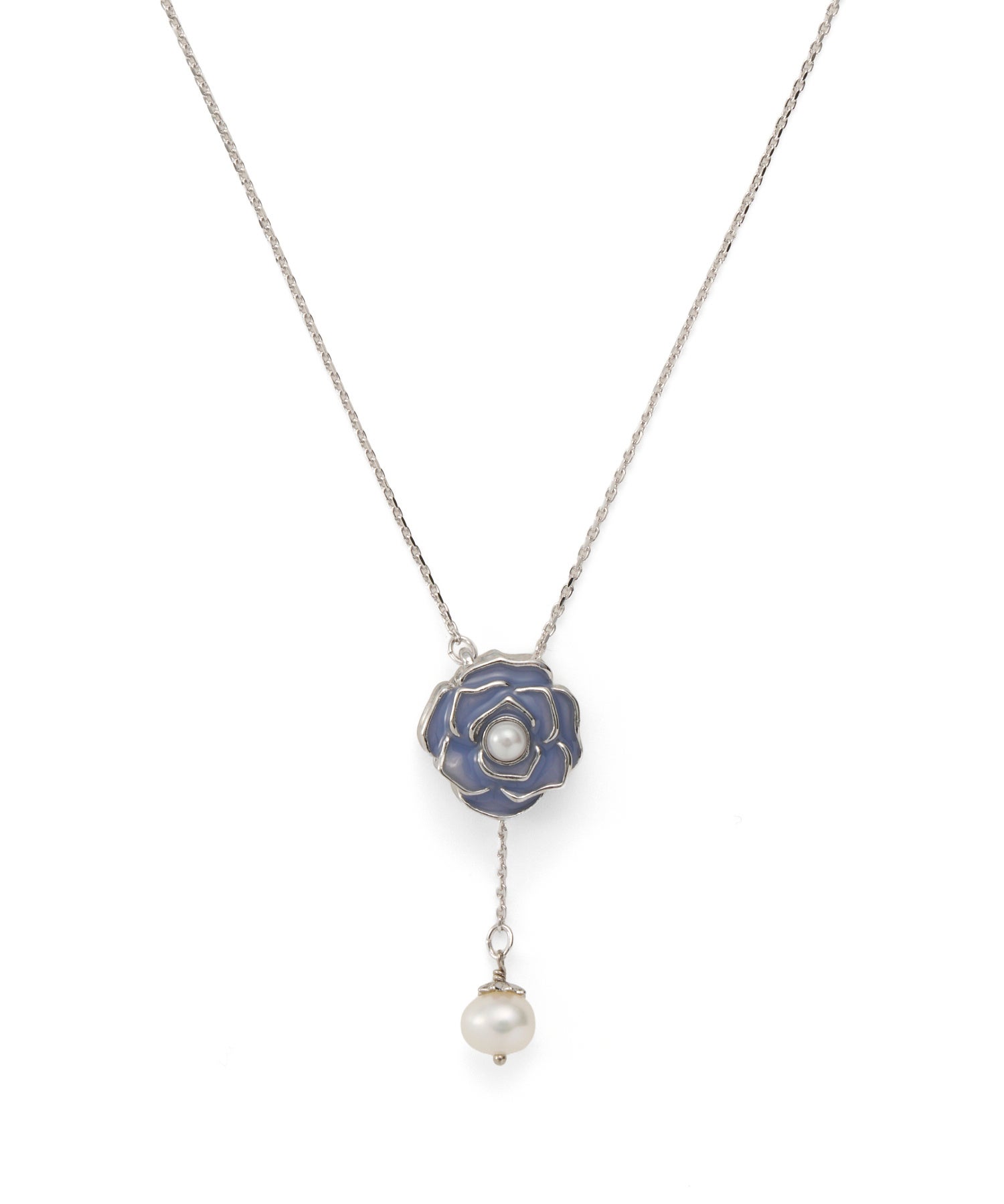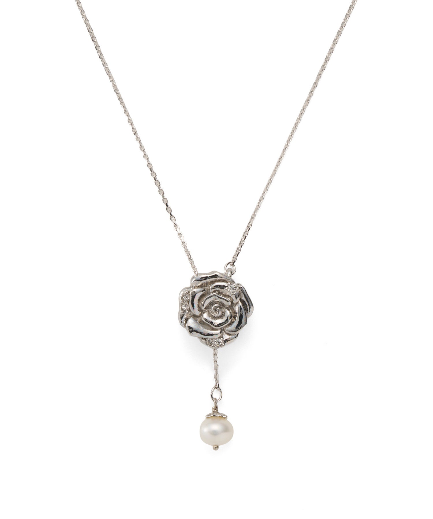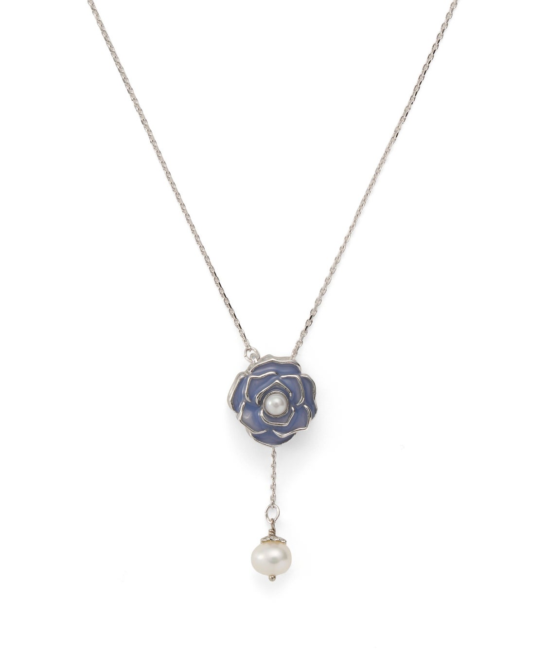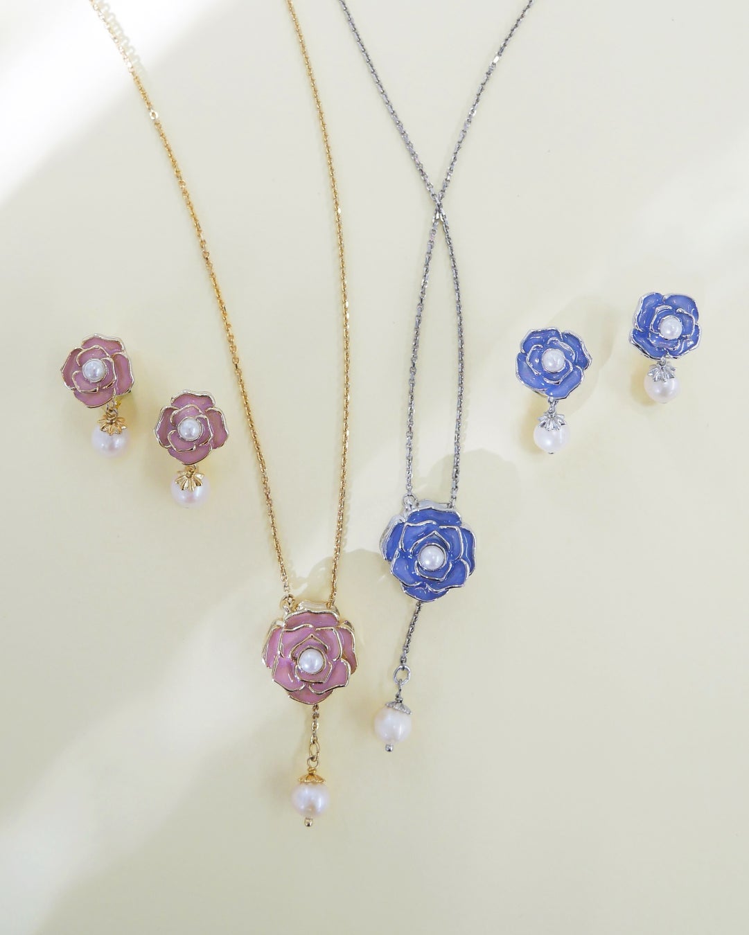揺れる淡水パールとの組み合わせが、フェミニンで優しい印象のローズモチーフシリーズ。ネックレスの裏面はメタルで表現した立体的なローズデザインで、気分に合わせてリバーシブルで楽しめます。肌馴染みのよいベージュピンクとブルーの2色展開です。