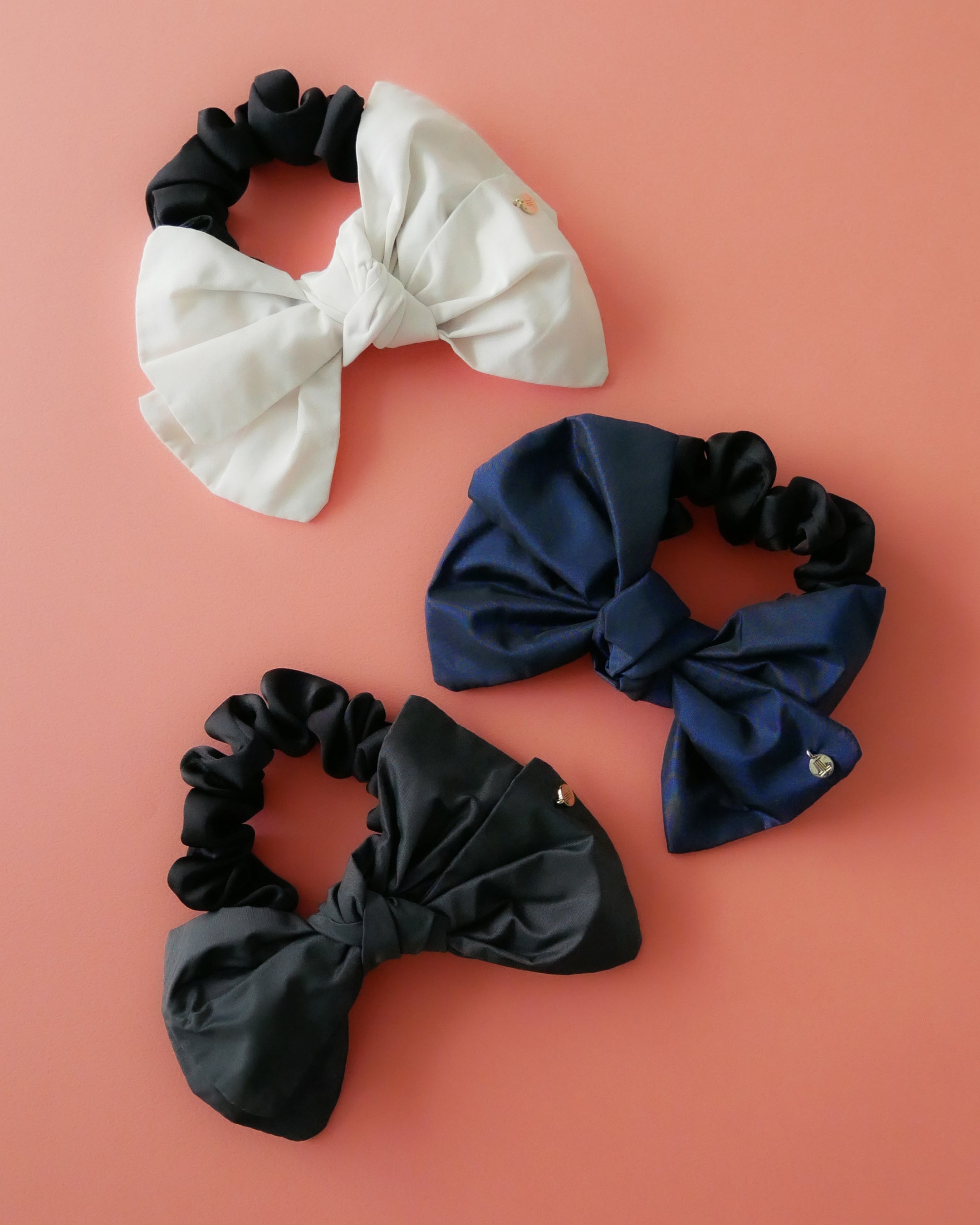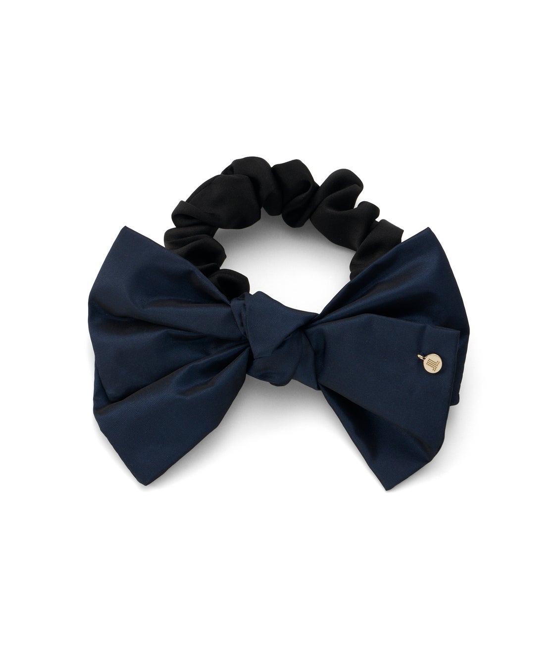 インパクトあるサイズ感のシュシュ。しわ感のあるダブルリボンデザインが甘くなりすぎず、さっと結ぶだけで抜け感のあるヘアスタイルに。洗いざらしのような質感のホワイト・グレーと、艶感のあるネイビーの3色展開です。