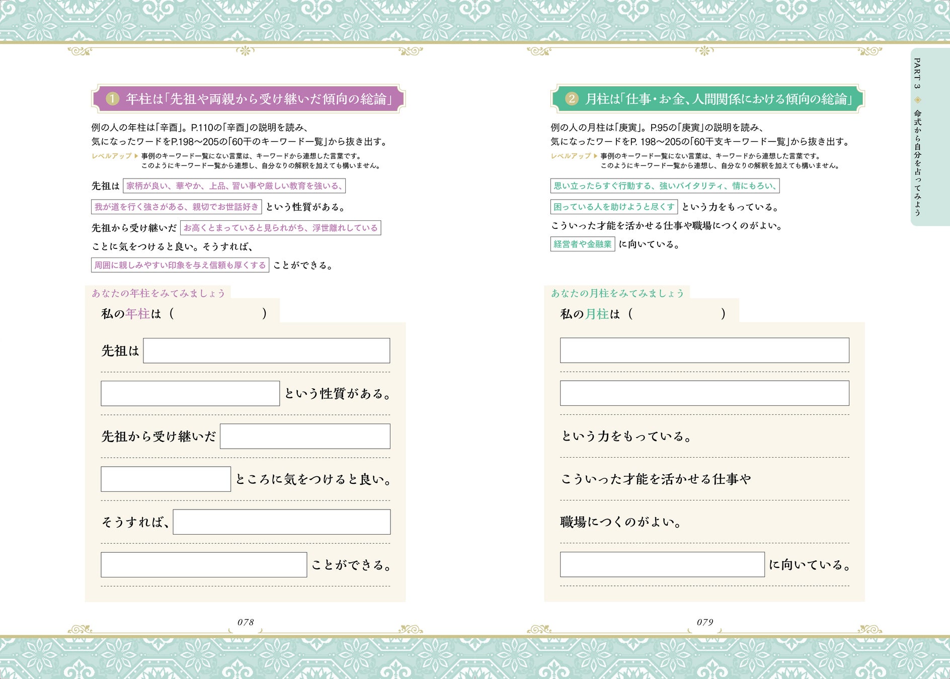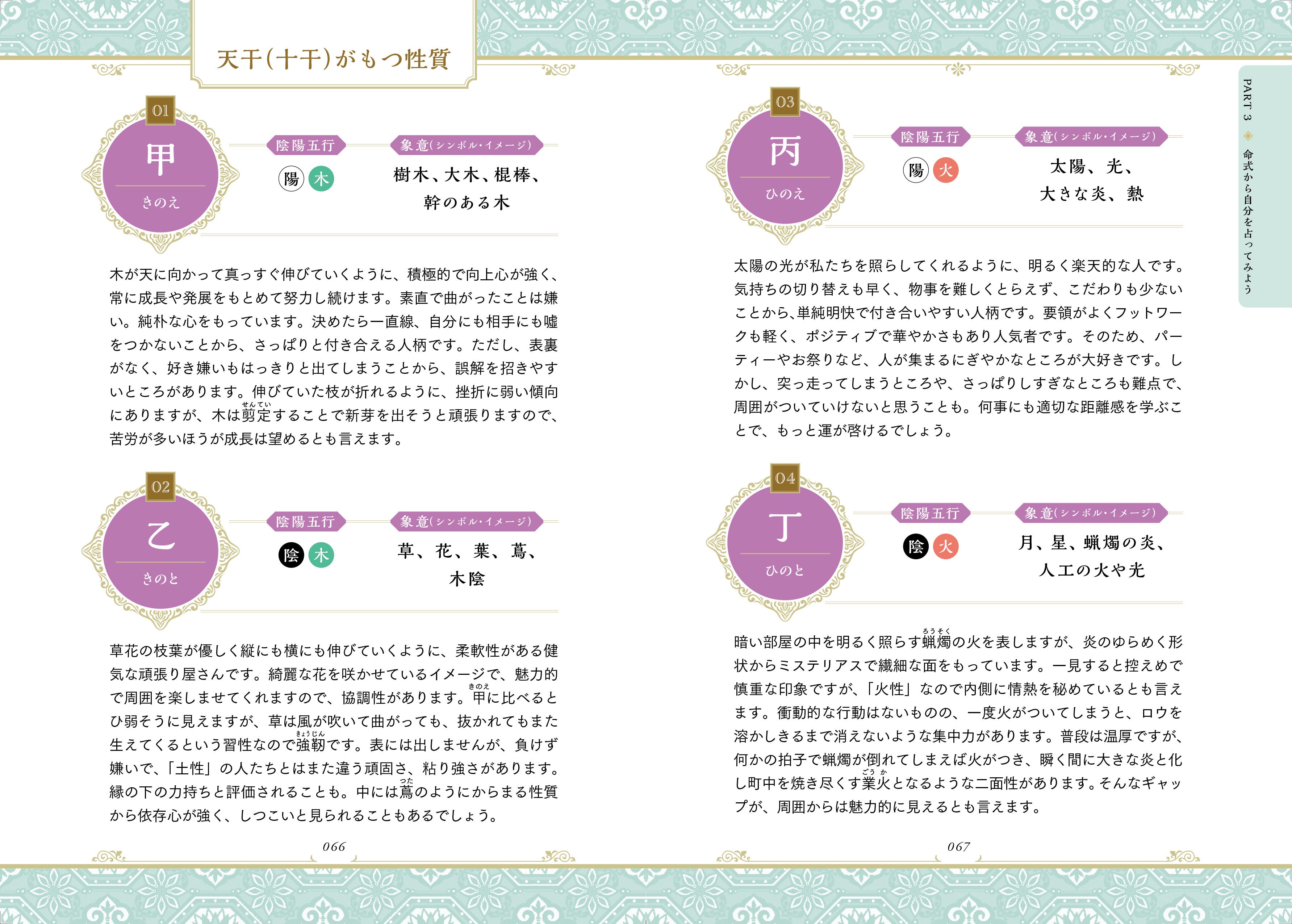 四柱推命には様々な鑑定法、そして基礎から応用まで深い学問ですが、本書では基礎を、特に、パーソナリティや本質をあぶりだすのに重要な、「日の柱」に重きを置いた鑑定法を紹介します。