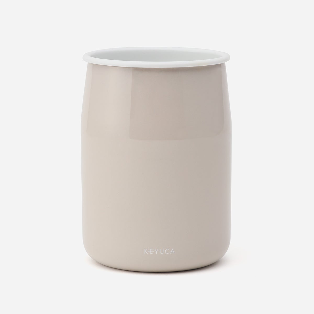 このカトラリースタンドは、仕切りのないシンプルな構造で、使う人のスタイルに合わせた自由な収納が可能です。ホーローの滑らかな質感と落ち着いたカラーが、食卓やキッチンに自然と調和し、出しっぱなしでも生活感を感じさせないデザイン。