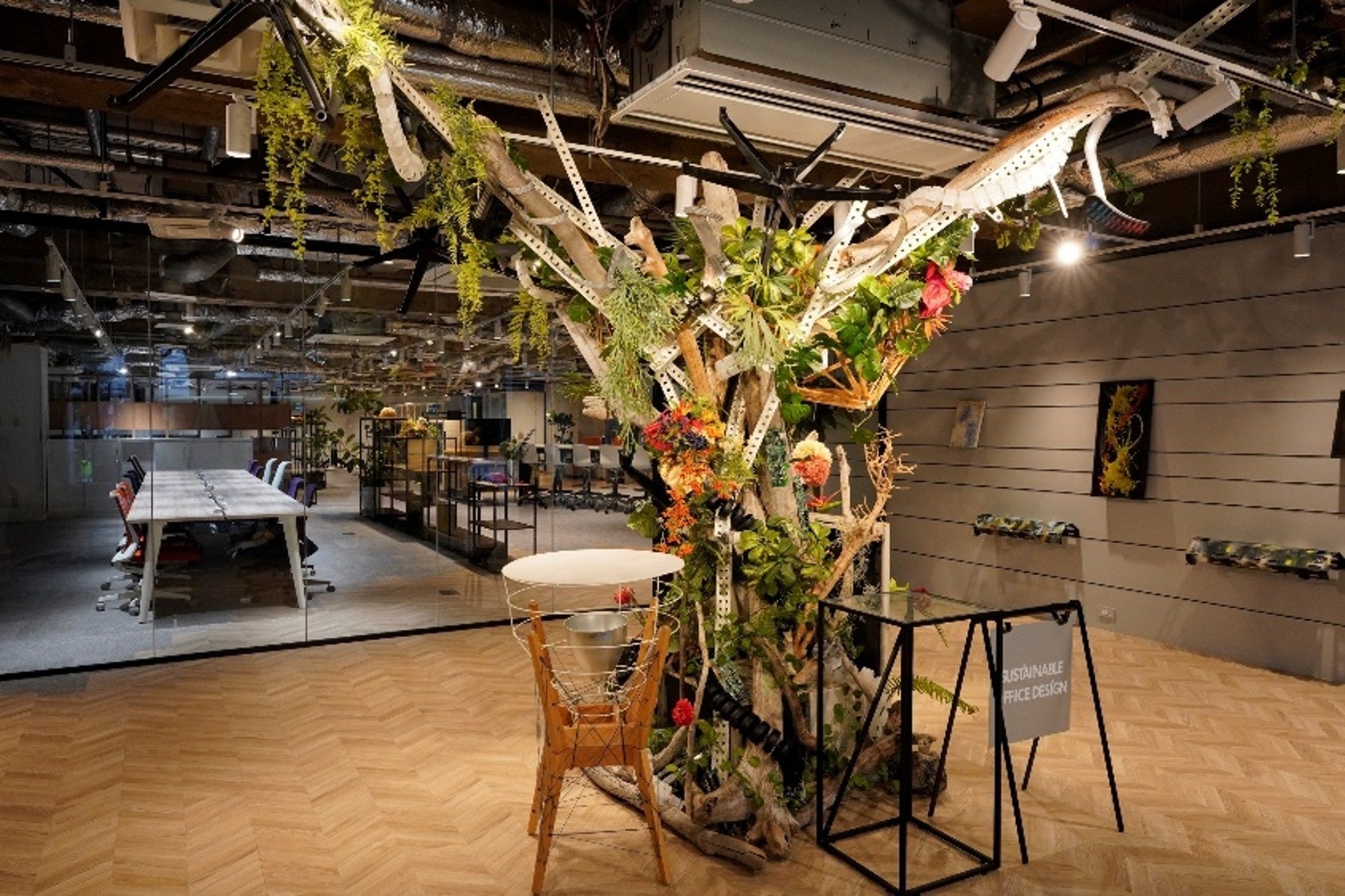 当サテライトは、業務スペース/カフェスペース/レセプションエリアを中心に、リユース家具やABW対応家具を組み合わせた実践的なレイアウトを採用しています。社員の働き方を多様に支えるオフィス設計を体験できる他、環境負荷の低減・コスト削減・快適性の両立を実現する「サステナブルなワークプレイス」をご提案しています。