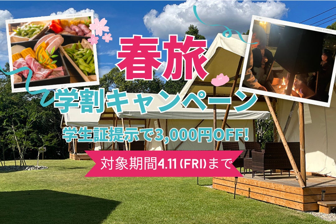 【愛知 瀬戸】卒業旅行応援!学生限定🌸春のグランピング学割キャンペーン開催🌸 【ウッドデザインパーク瀬戸】ジブリパークから車で3分!