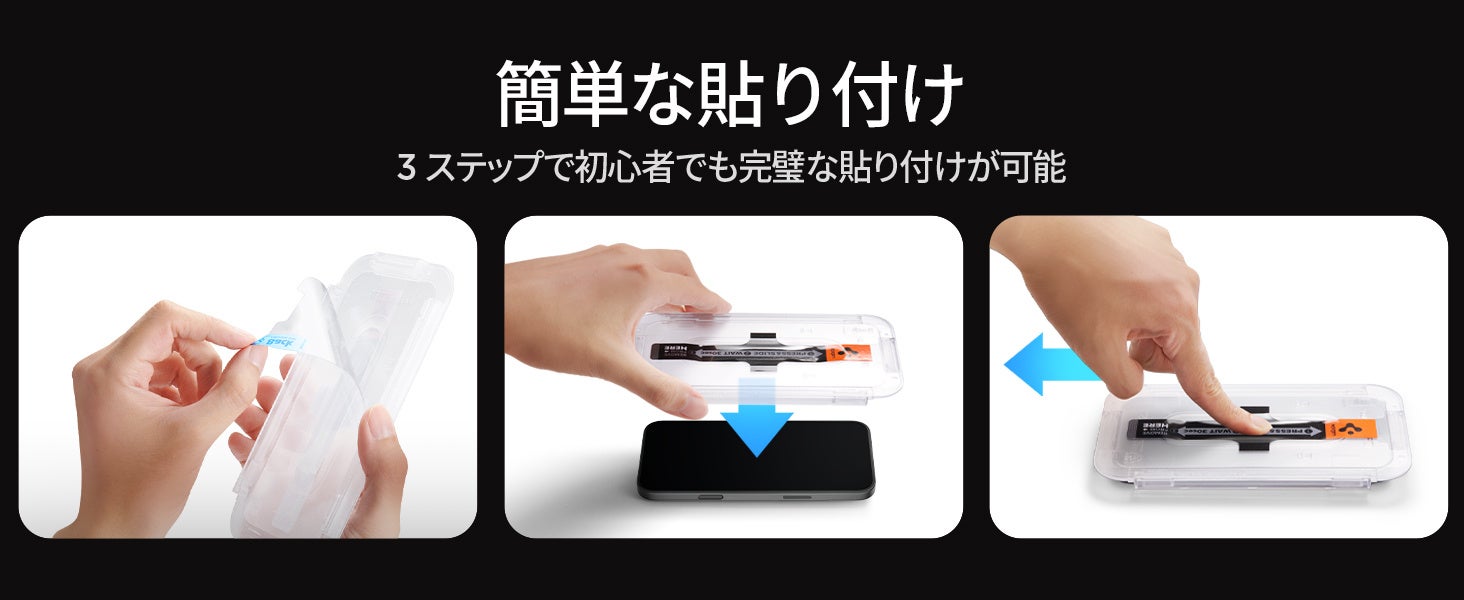 ・初心者でも3ステップで簡単に貼れるシュピゲンのEZ Fitトレイ付き。
