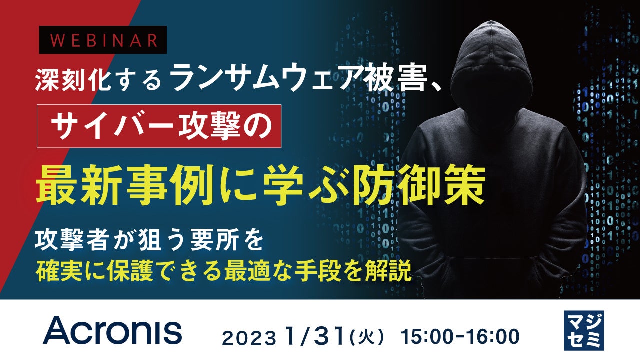 ・本セミナーは、2022年12月9日開催セミナー「公的機関も狙い始めたランサムウェア 被害実例に見るサイバー攻撃の最新手法と防御策」と同じ講演内容を含んでおります。多数のご要望により、追加開催させていただきます。