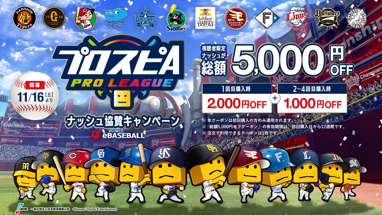 オフシーズンに楽しむもう1つのプロ野球『プロスピA プロリーグ 2024シーズン』(通称:『スピリーグ』)にナッシュが初協賛!