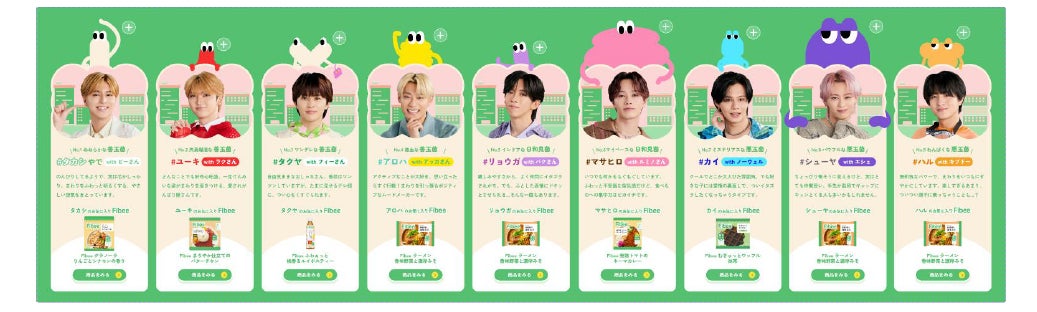 そんなFibeeの魅力をさらに多くの方にお届けするため、第1弾では人気アイドルグループ「超特急」とのスペシャルコラボレーションを発表。Fibeeのキャラクター「Fibees(ファイビーズ)」とメンバー数が同じという偶然から「擬人化したFibees」として、グループ名を「腸特急」に改名、熱いファンの皆さんとともにFibeeのパワーを届ける一大プロジェクトを6月24日よりスタートしました。