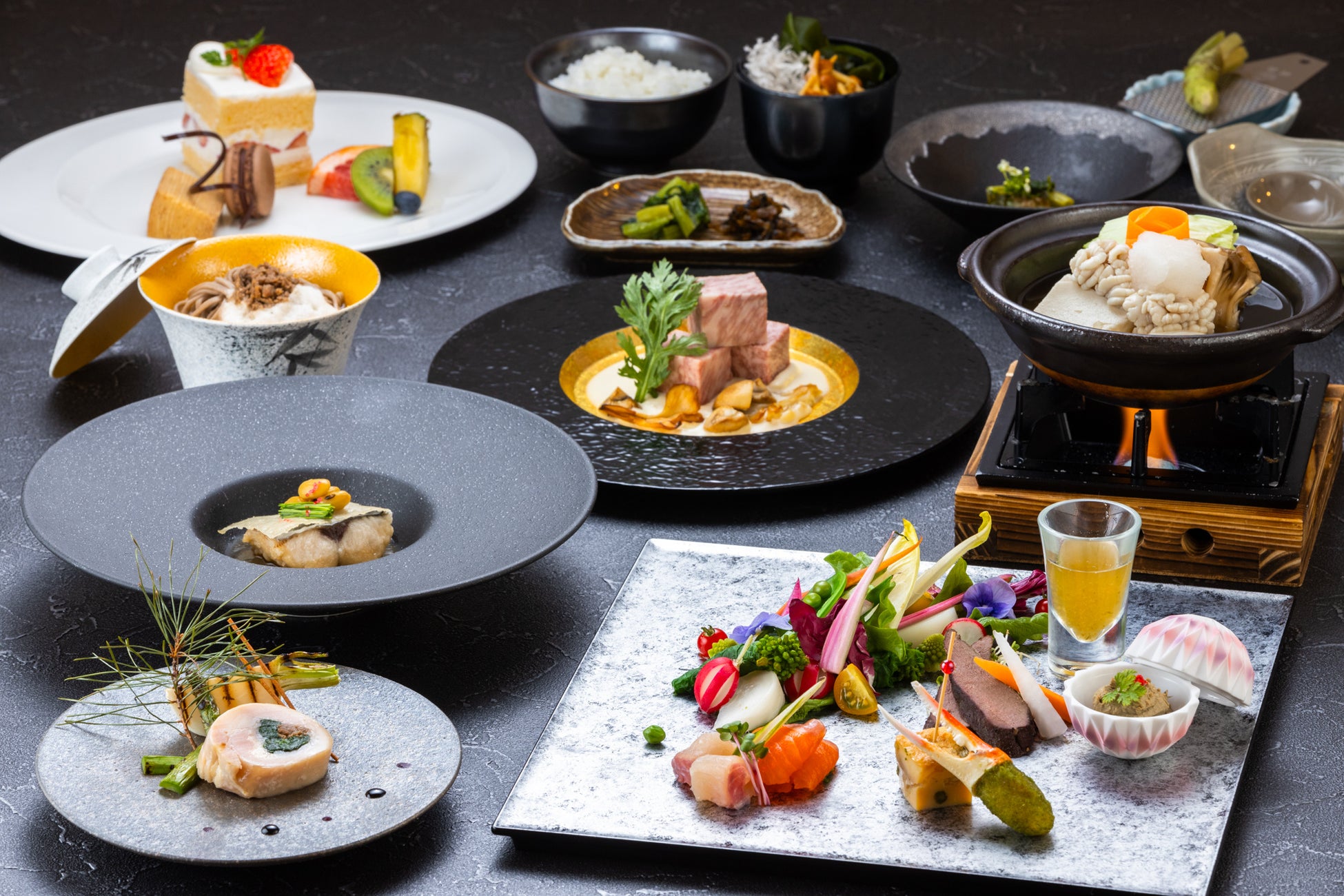 安曇野産の野菜やお米、山葵、信州味噌や長野県産の黒毛和牛ローストなど、信州の食材と共に冬の味覚「海の幸」もご一緒にお楽しみいただけます。デザートは、パティシエが仕上げるちょっぴり多めの嬉しい一皿です。