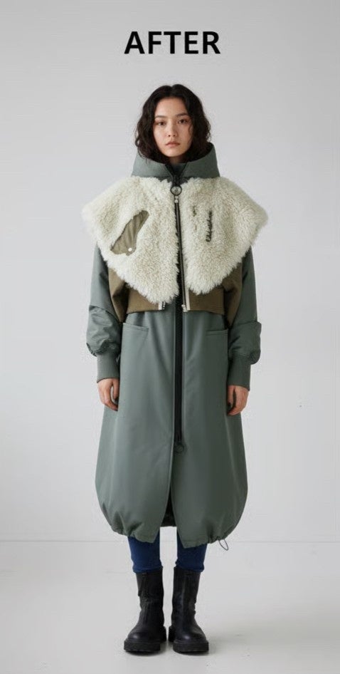 ■ Before → After:1枚の服写真が、数秒で“着用写真”に変わる