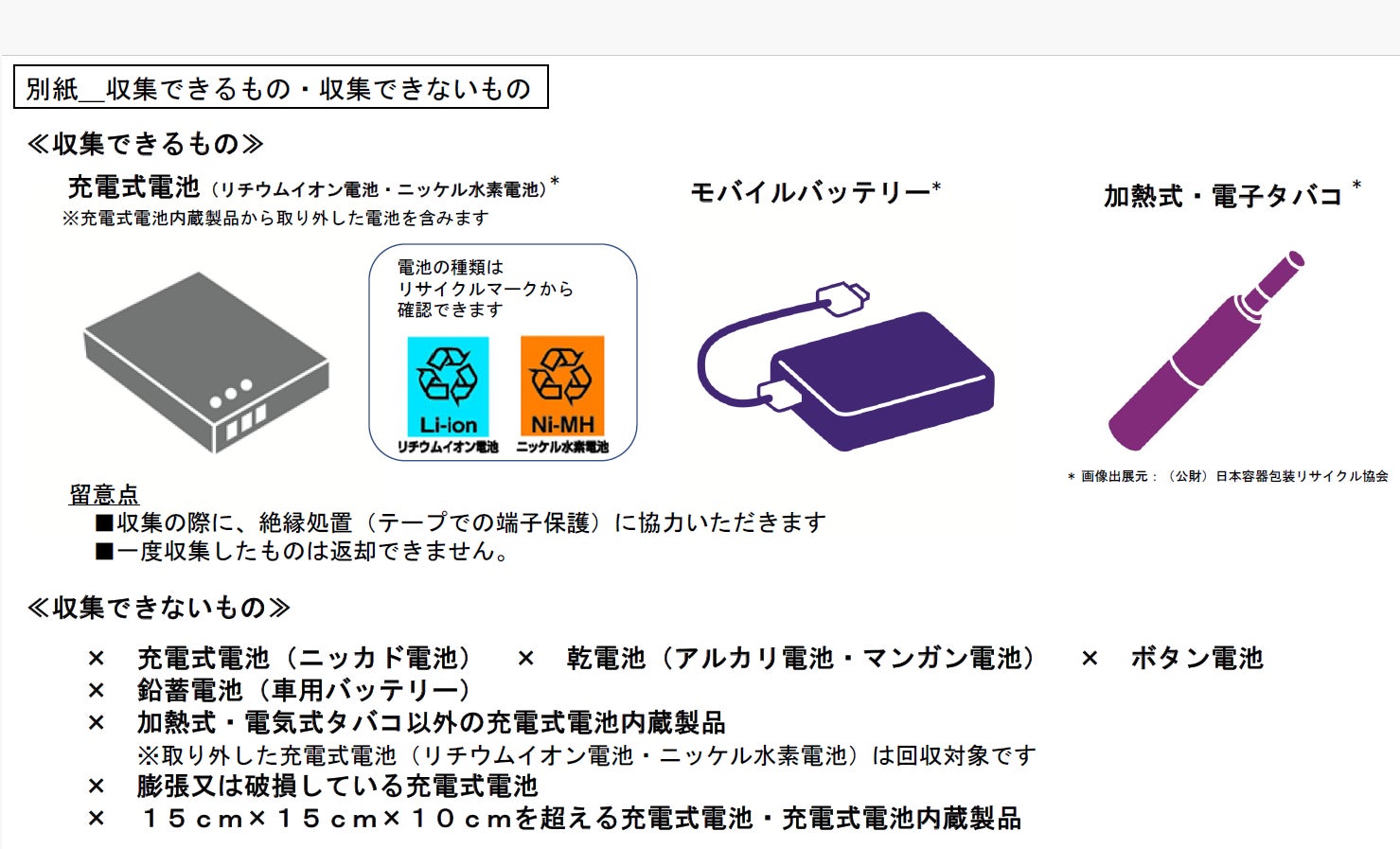 *4 お持ちいただく充電式電池等の詳細は別添「収集できるもの・収集できないもの」を御覧ください。