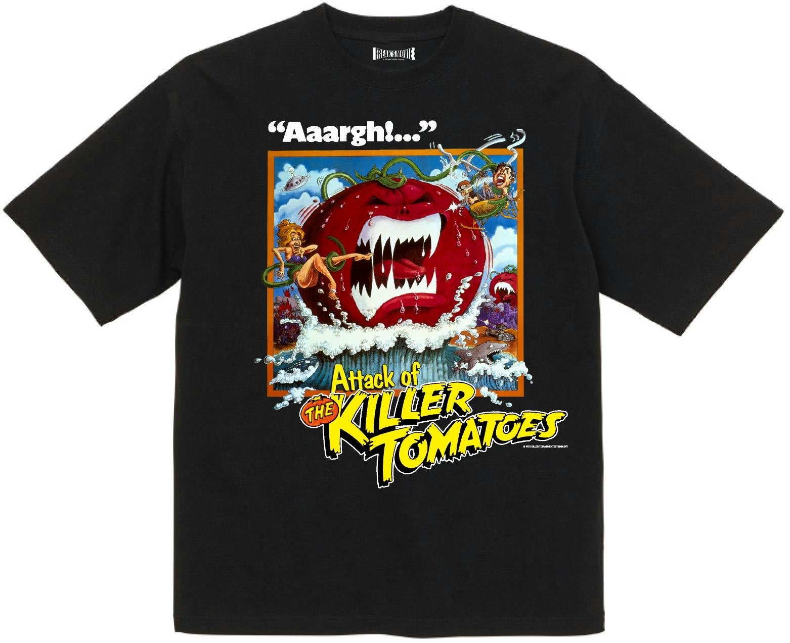 アメリカ政府が極秘開発した巨大トマトが突然変異で大暴走、軍は対トマト兵器の人間ロボットを投入するも敗れ、トマト対人類の壮絶な市街戦へと突入する。本国公開当時はB級をはるかに通り越して“Z級”とまで揶揄され、日本ではビデオ化の際ジャケットに≪不朽の駄作「怒りのトマト」戦慄のビデオ化!≫と表記された本作。しかし本作が後世に与えた影響はバカにできないほど大きい。それは本作があのティム・バートン監督の傑作SFコメディ『マーズ・アタック!』(98)におけるラストの火星人撃退の元ネタとなり、また『キラーコンドーム』(96)、『アタック・オブ・ザ・ジャイアントウーマン』(96)、『アタック・オブ・ザ・ジャイアント・ケーキ』(99)など多くのフォロワー作品を生んだことでも明らかである。あまりのくだらなさで大人気となり3作もの続編が制作、アニメ化、ゲーム化もされた、熱狂的な支持を集めるカルトSFホラーコメディ。