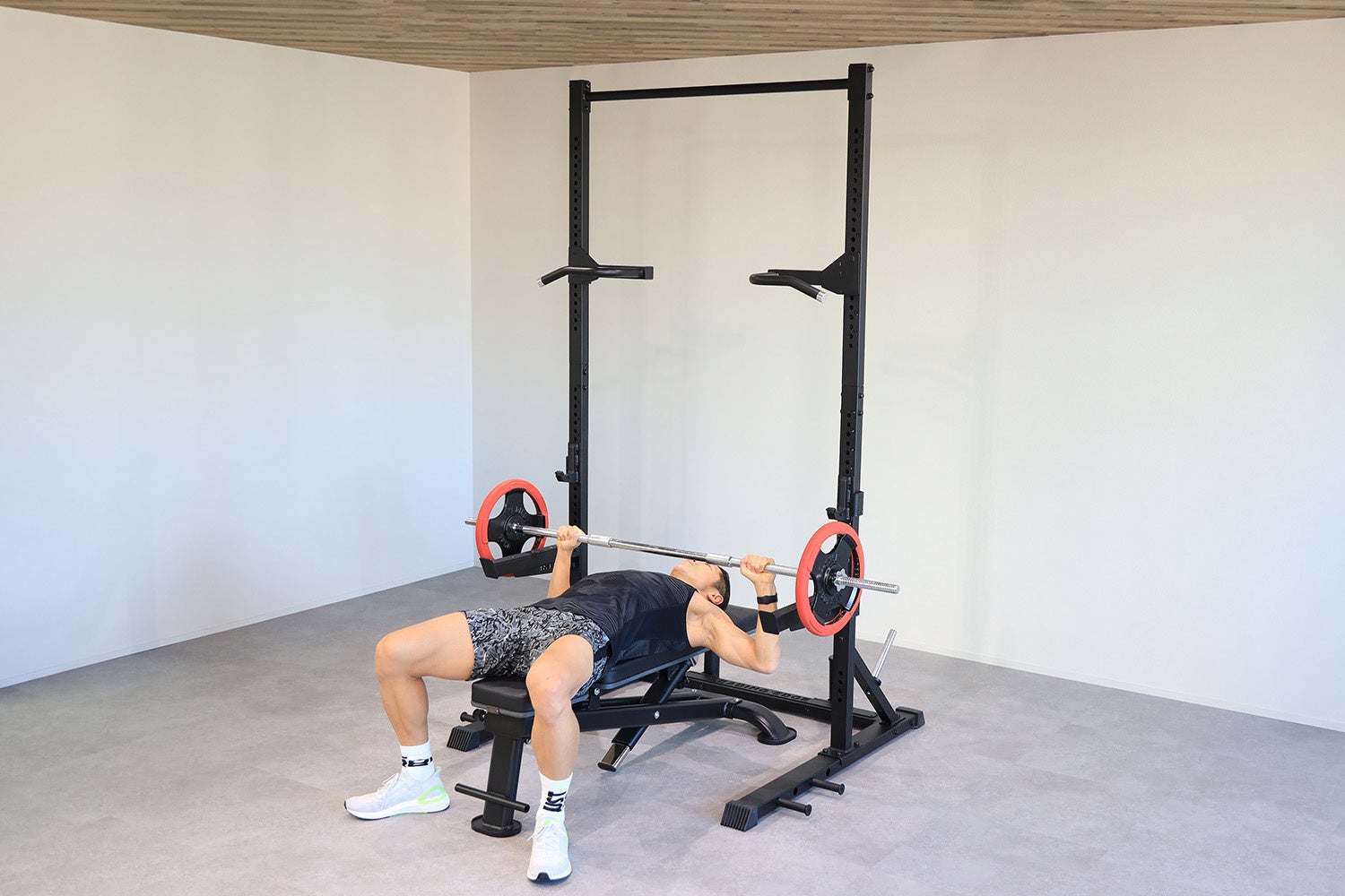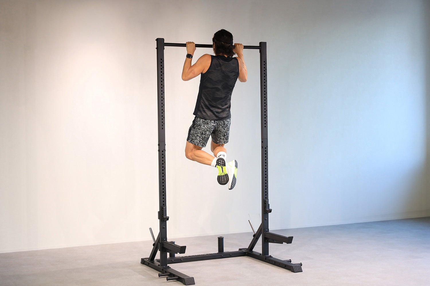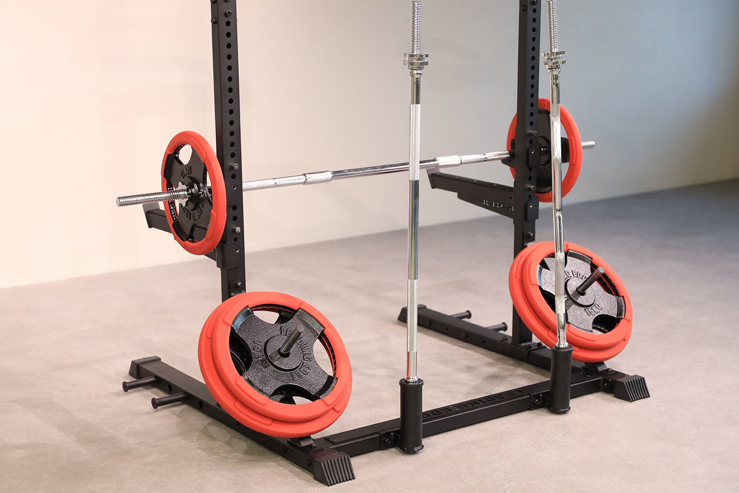 パワーラックに比べ、コンパクトなつくりのため、ご自宅など省スペースで本格的なトレーニングが実現できます。本体以外にベンチ、バーベルなどを用意すれば、ビッグ3をはじめとするバーベルを使ったほぼすべてのフリーウエイトトレーニングが可能。本体にはシャフトやプレートのストレージ機能も搭載しており、置き場所にも困りません。