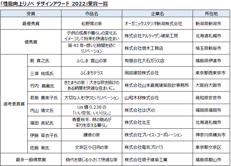 「性能向上リノベ デザインアワード 2022」 審査結果サイト