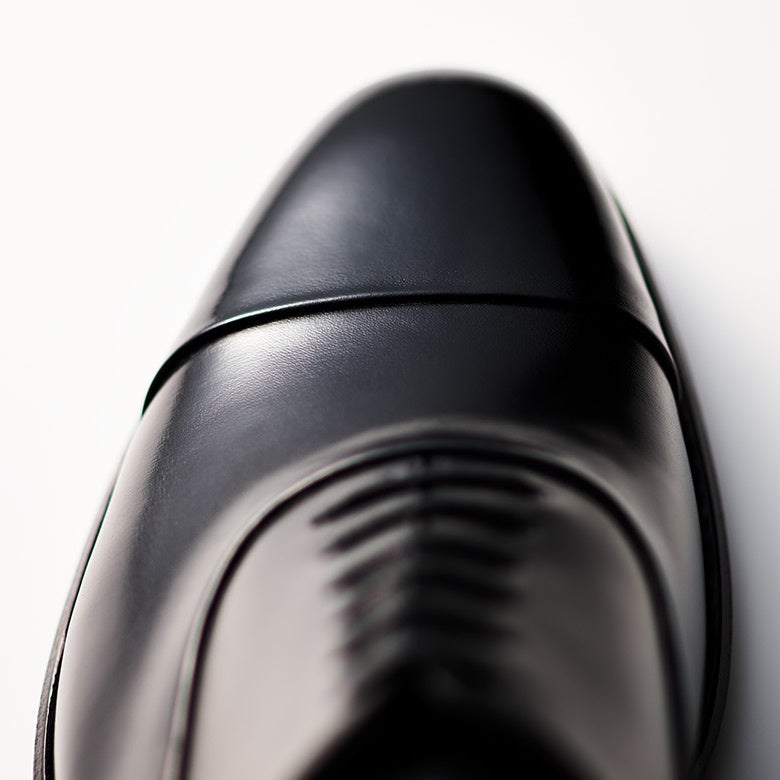 アッパーの繋ぎ目にステッチを見せず縫製する“レベルソ仕立て”を採用したストレートチップ「謹製 星之丞」。現行コレクションで展開する「匠一郎」にも似たデザインですが、アイレットの横にステッチを見せない仕上げのため、よりミニマルに削ぎ落とされた表情に。HAAS社製ボックスカーフ、曲線美を際立たせるセミべヴェルドウエスト、シームレスヒールといった最高級仕立てが、抑制美の効いたレベルソ仕立てによっていっそう引き立っています。三陽山長のレベルソ仕立ては、革の端を極力薄くすいてから縫い合わせているのが特徴。これにより仕上がり面がなだらかになるため、流れるような一体感を生み出せるのです。